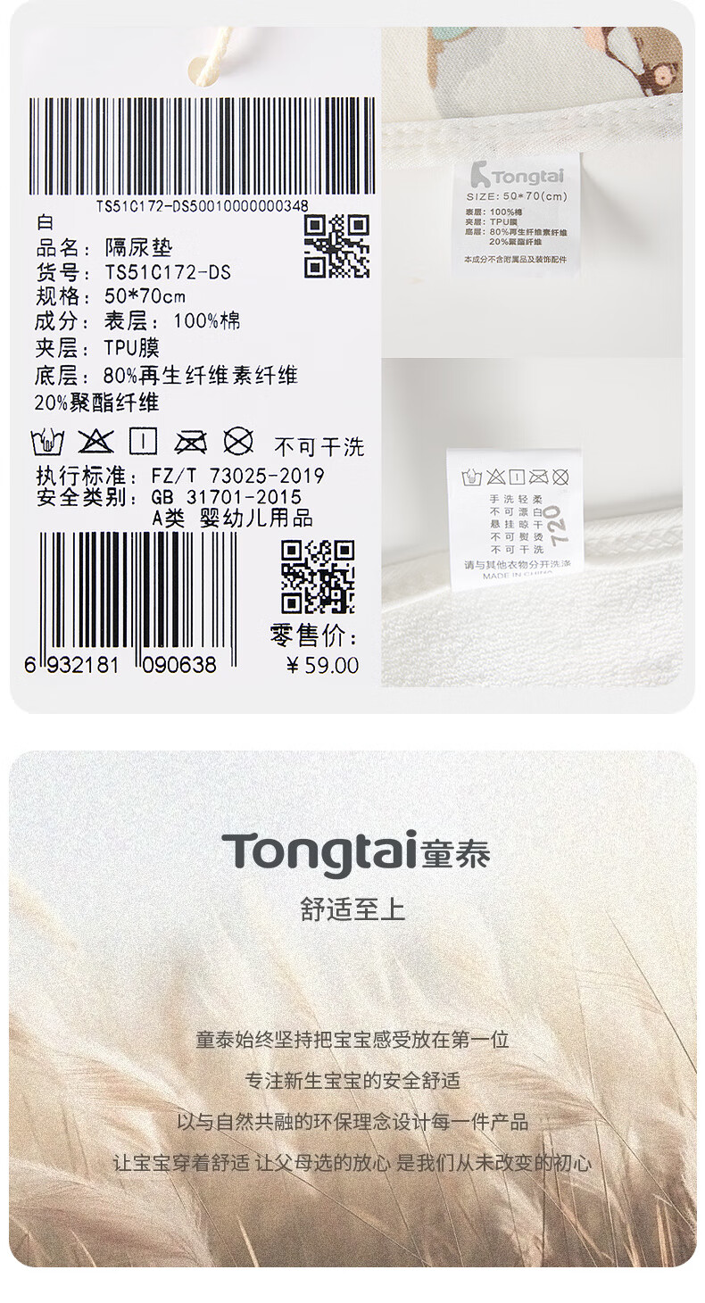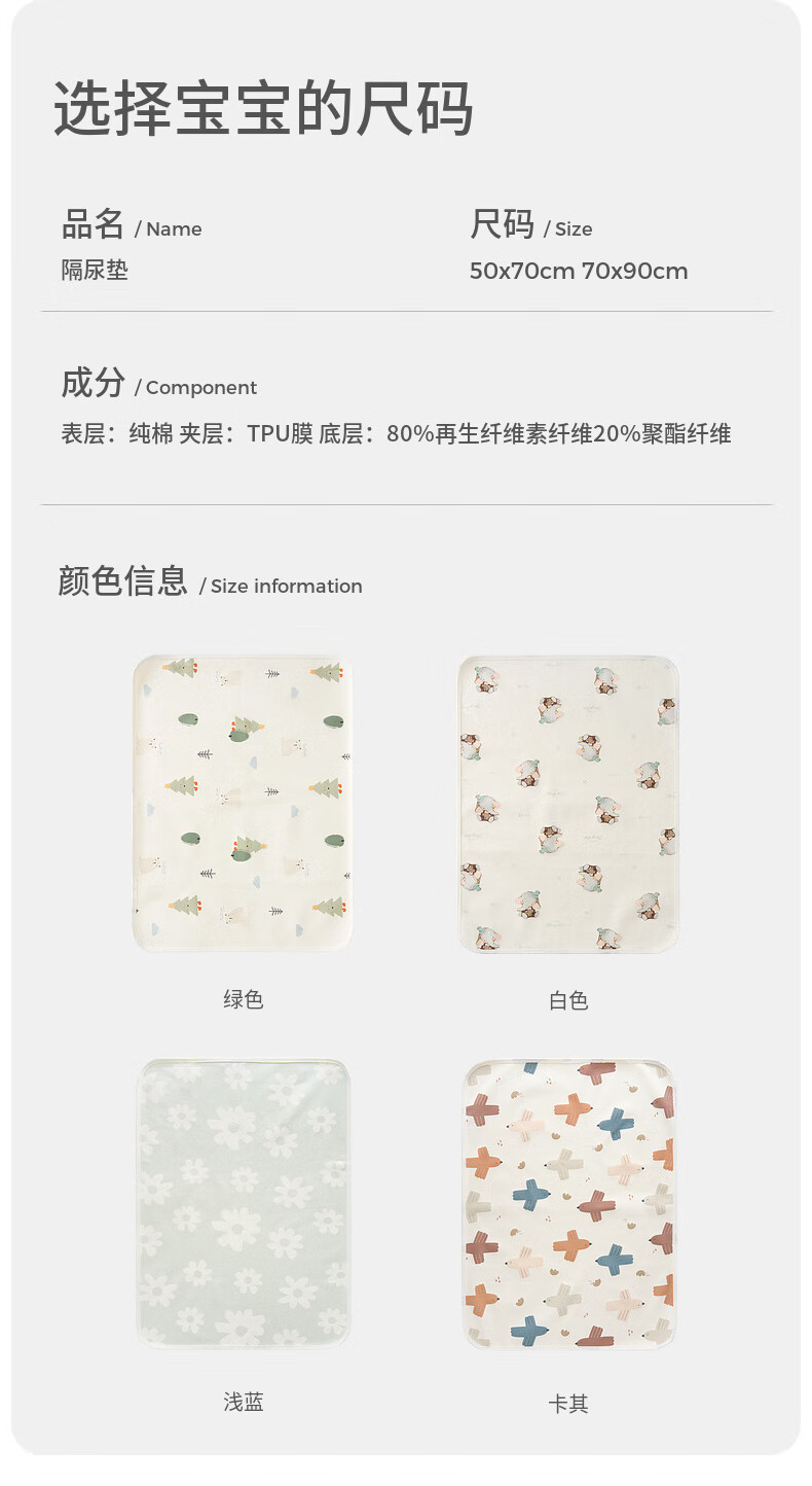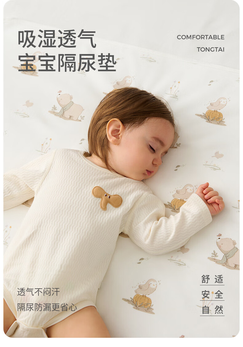 Tongtai newborn baby diaper pad pure cotton baby moisture-absorbent breathable diaper sheet leak-proof mattress green 80x100cm