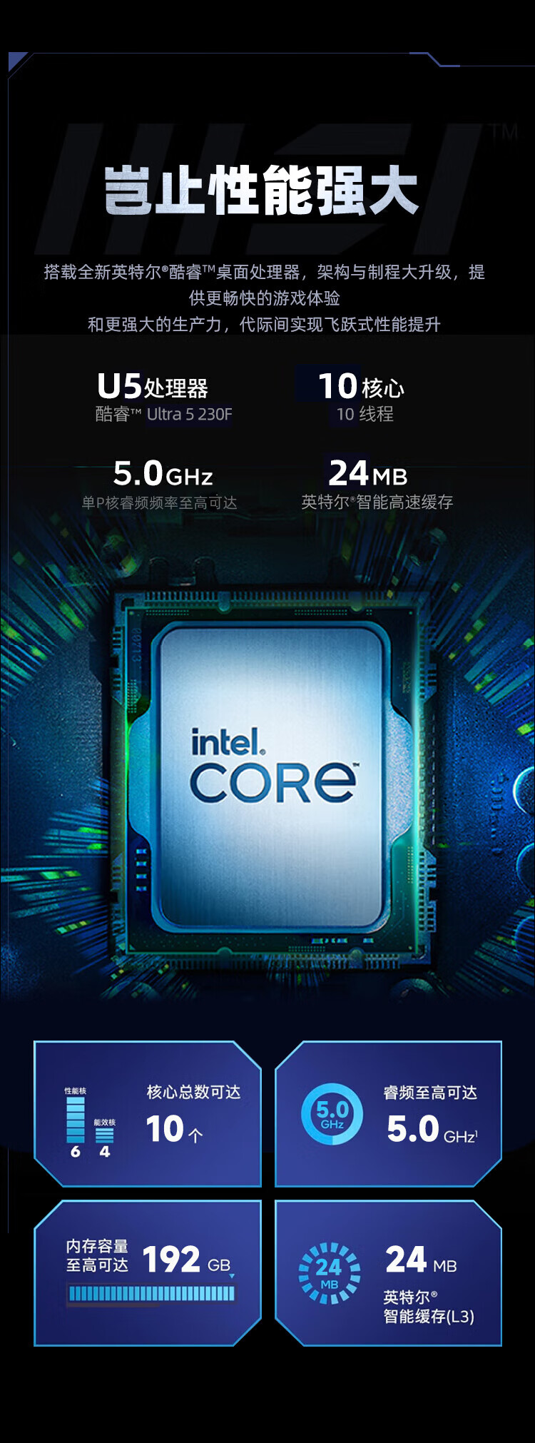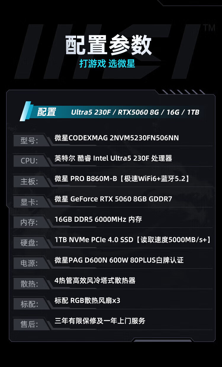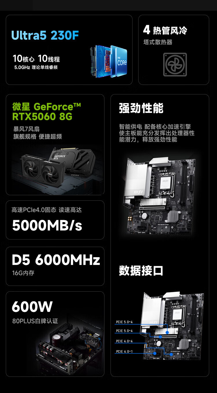 MSI Dark Knight MAG i5 upgrade U5 230F/RTX5060/16G D5/1T e-sports game designer desktop computer host complete machine