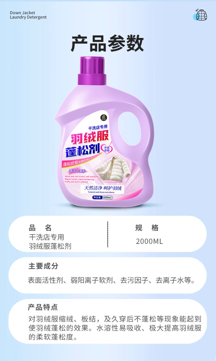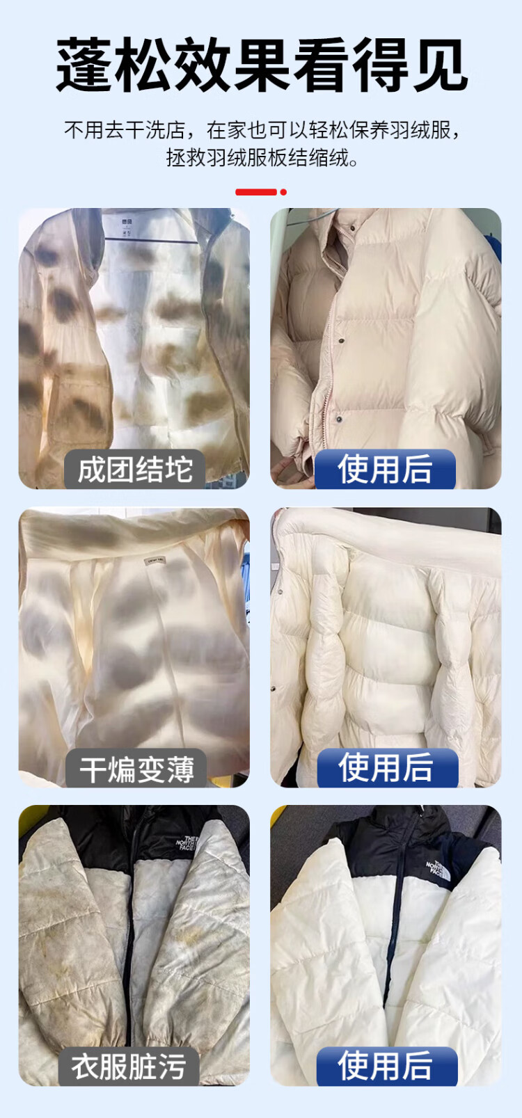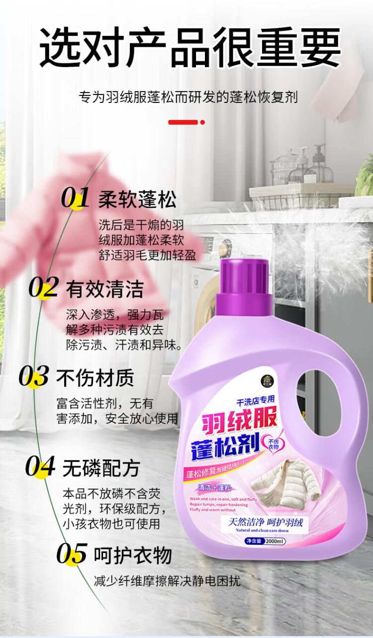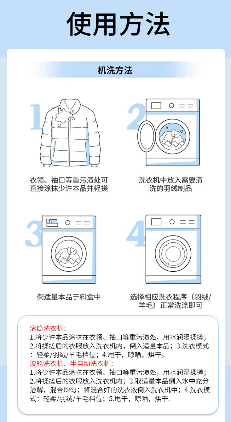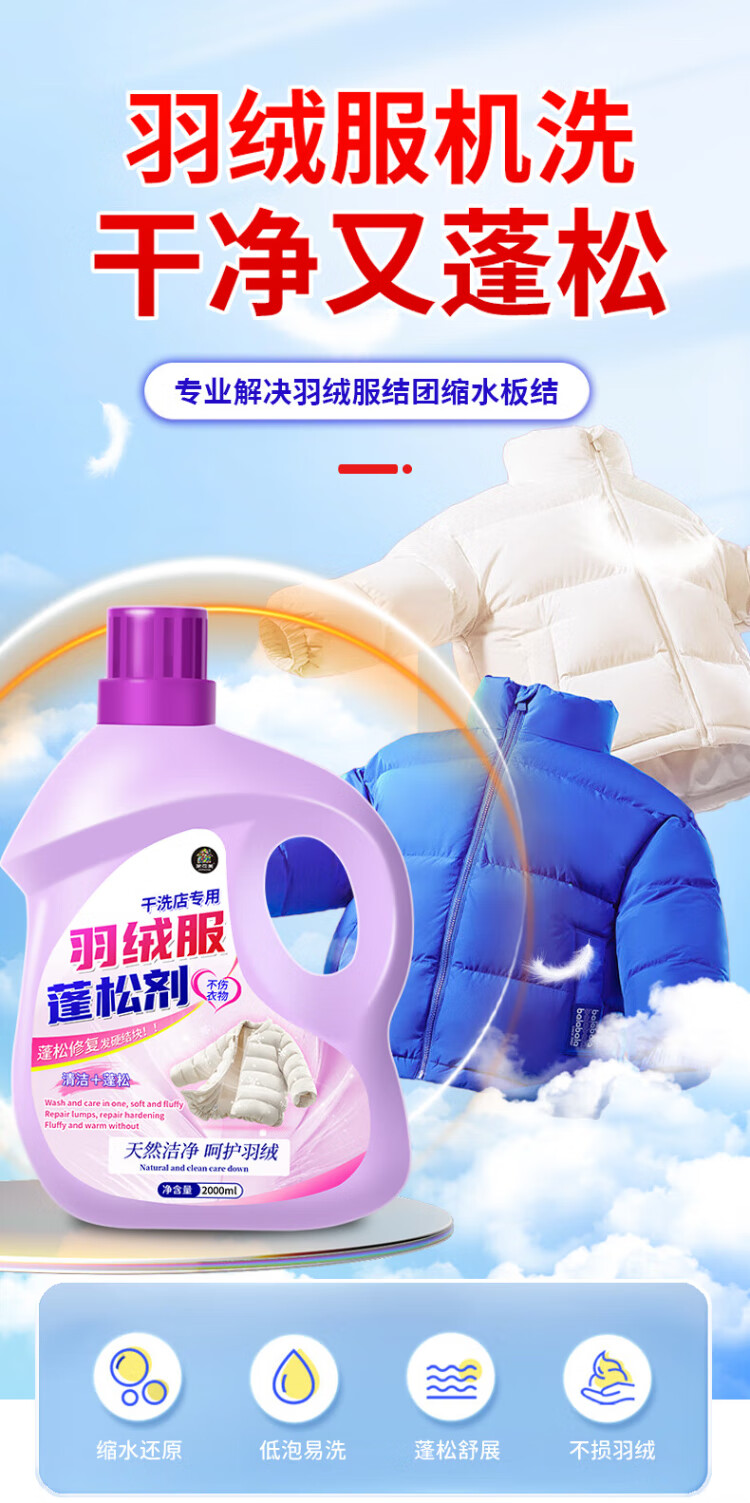 Jiakemei down jacket fluffy cleaning detergent washing machine hand washing special laundry detergent restores and removes oil stains household artifact