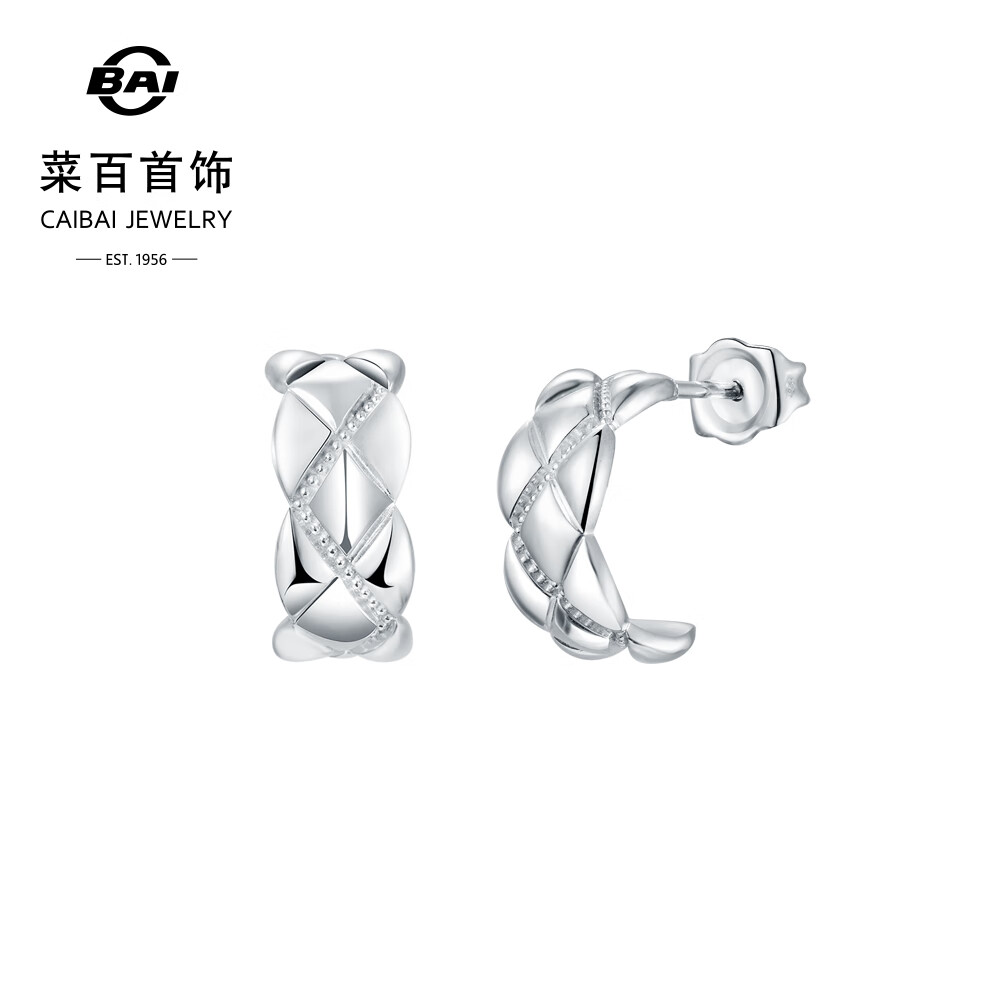 Caibai Jewelry Platinum Earrings Pt950 Platinum Mystyle Retro Diamond Pattern Earrings Price Approximately 4.80 grams