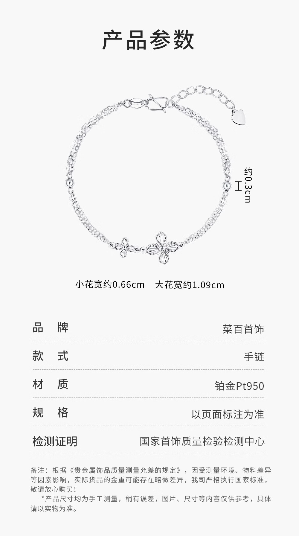 Caibai Jewelry Platinum Bracelet Pt950 Platinum Cross Flower Double Chain Stacked Bracelet Price Approximately 4.10g Approximately 16cm