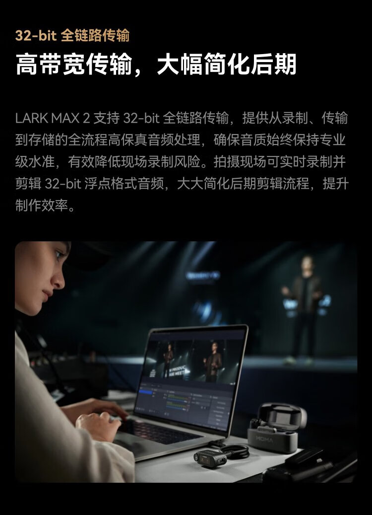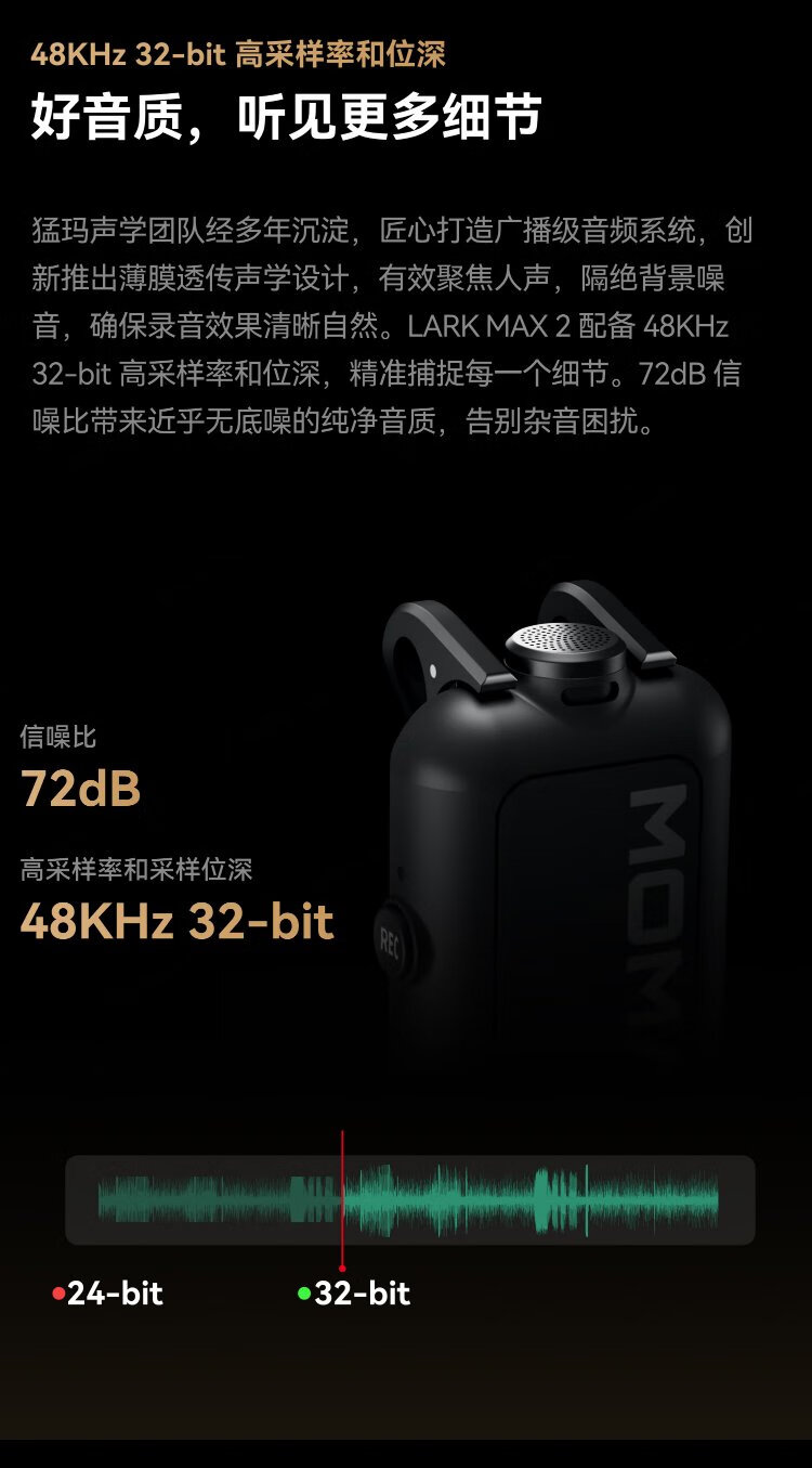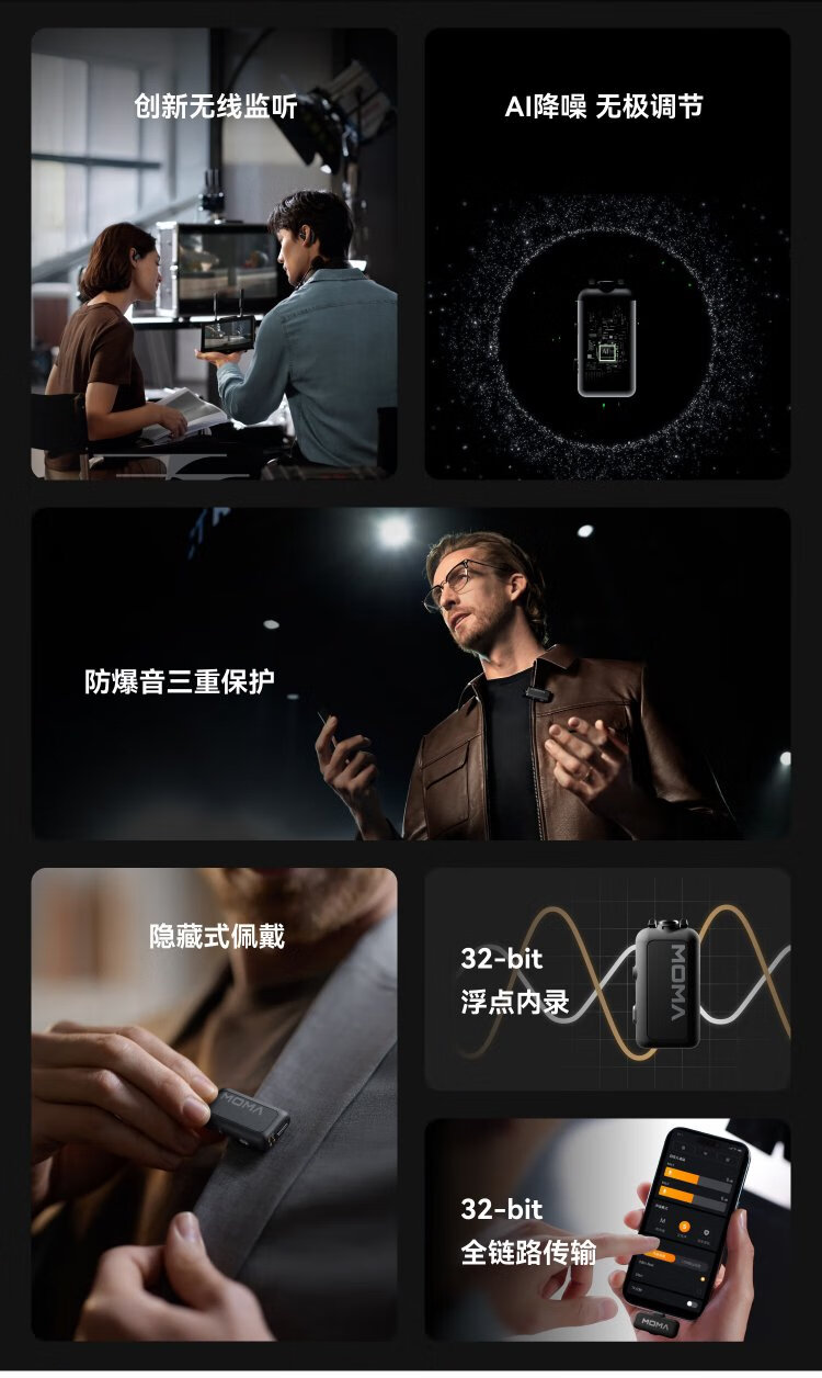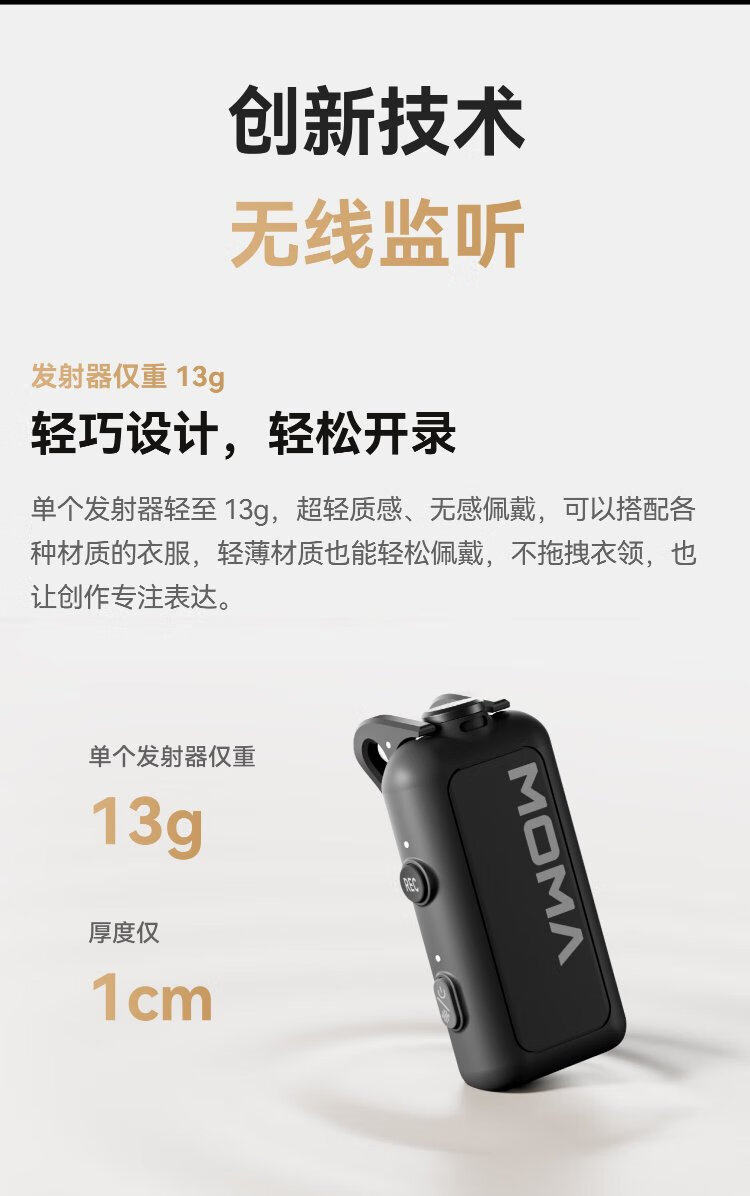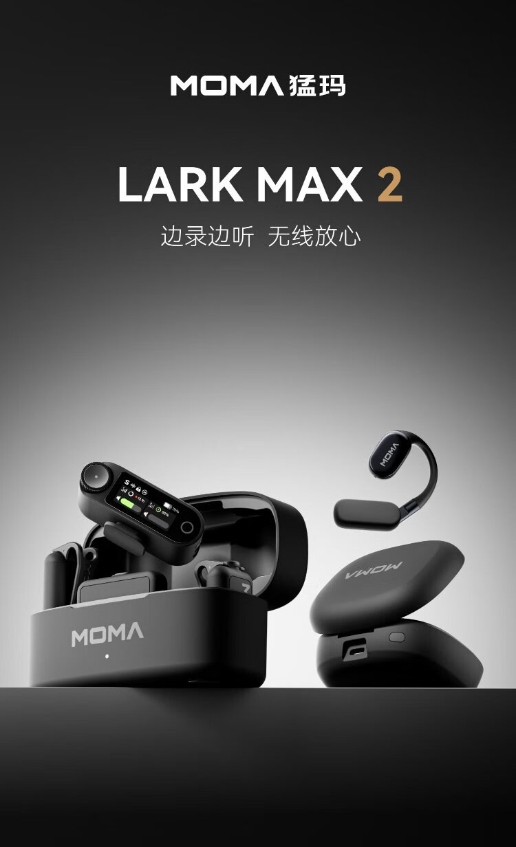 MOMA LARK MAX 2 Wireless Monitoring Lavalier Microphone Canon DSLR Sony Mirrorless Camera Mobile Short Video Conference Live Recording AI Noise Reduction Mammoth Wireless Microphone All-in-One Monitoring Set (Including Monitoring Headphones) Professional Technical Support (If you don’t know, ask customer service)