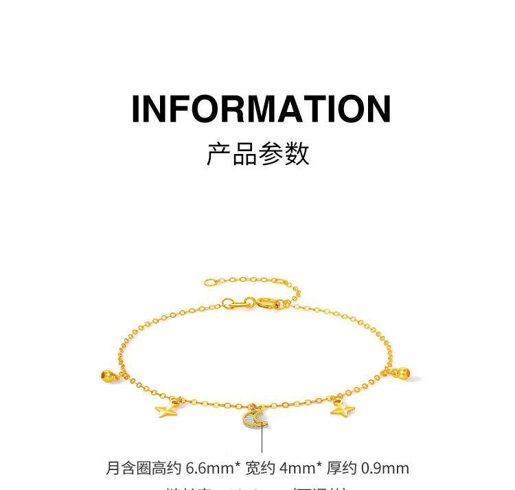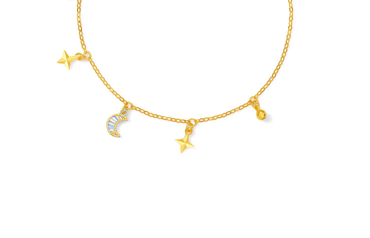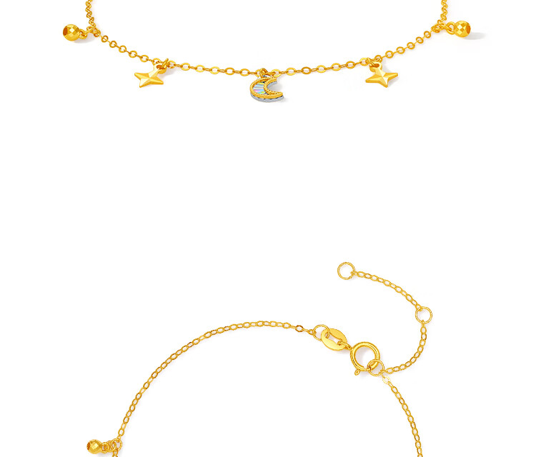 Saturday Lucky Star and Moon double color golden 18K gold bracelet birthday gift for girlfriend C0722720 16+3cm