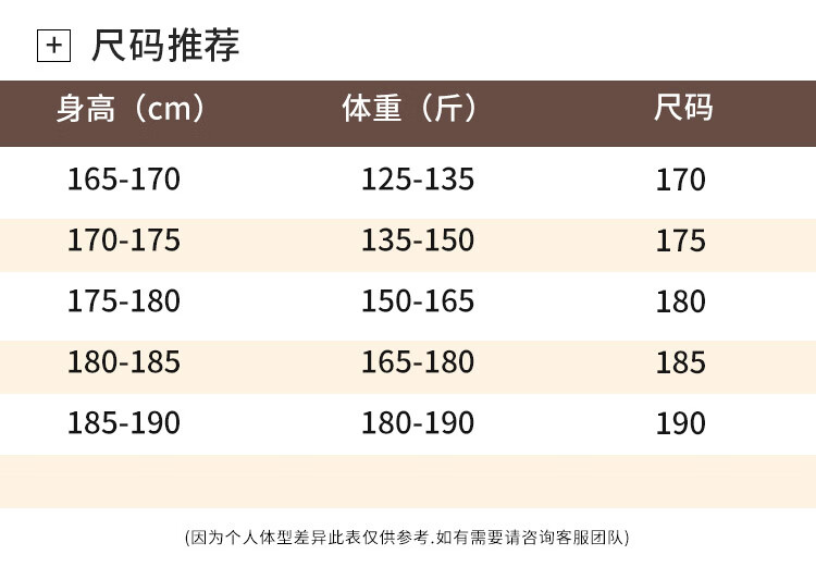 China (cm) 165 / 88-90 170 / 96-98 175 / 108-110 180 / 118-122 185 / 126-130