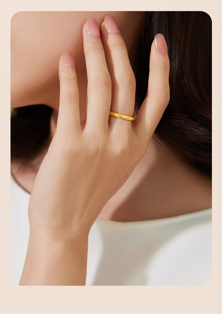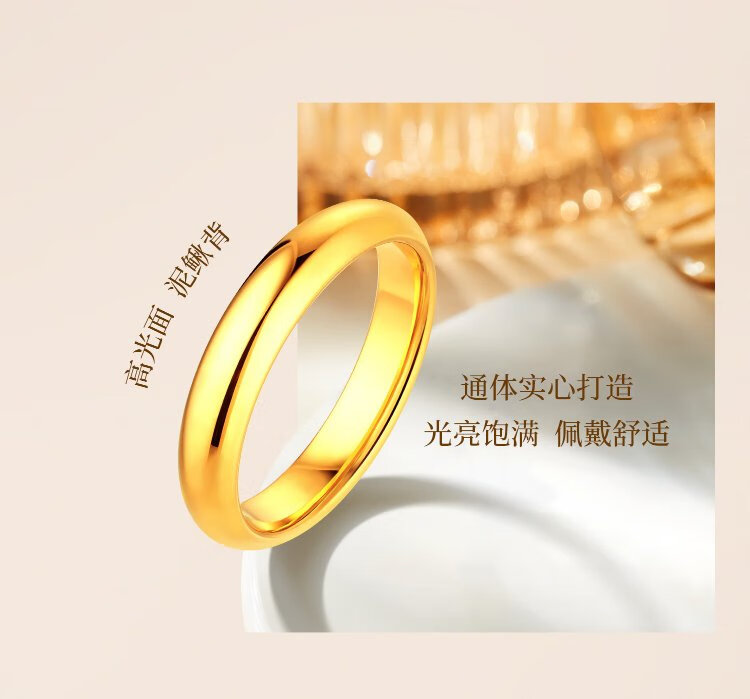 Lukfook Jewelry Gold Ring Solid Loach Back Pure Gold Couple Ring Price F63G0004DS No. 14 - About 6.6 grams