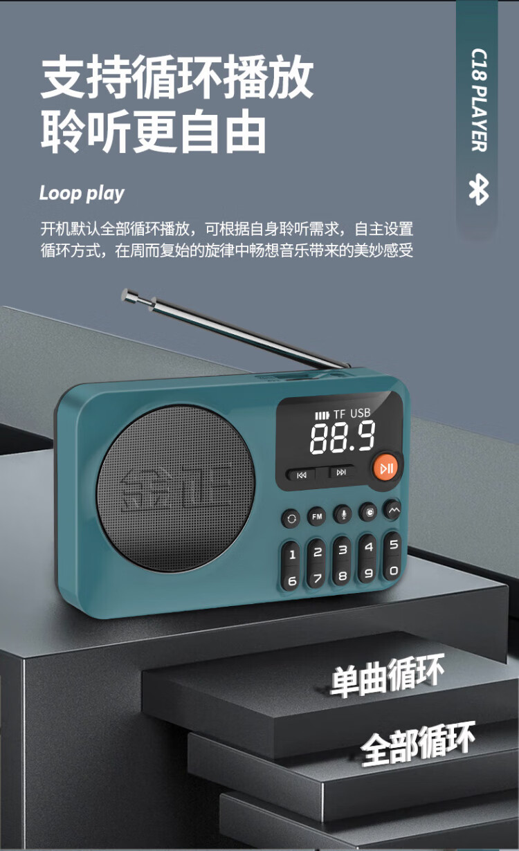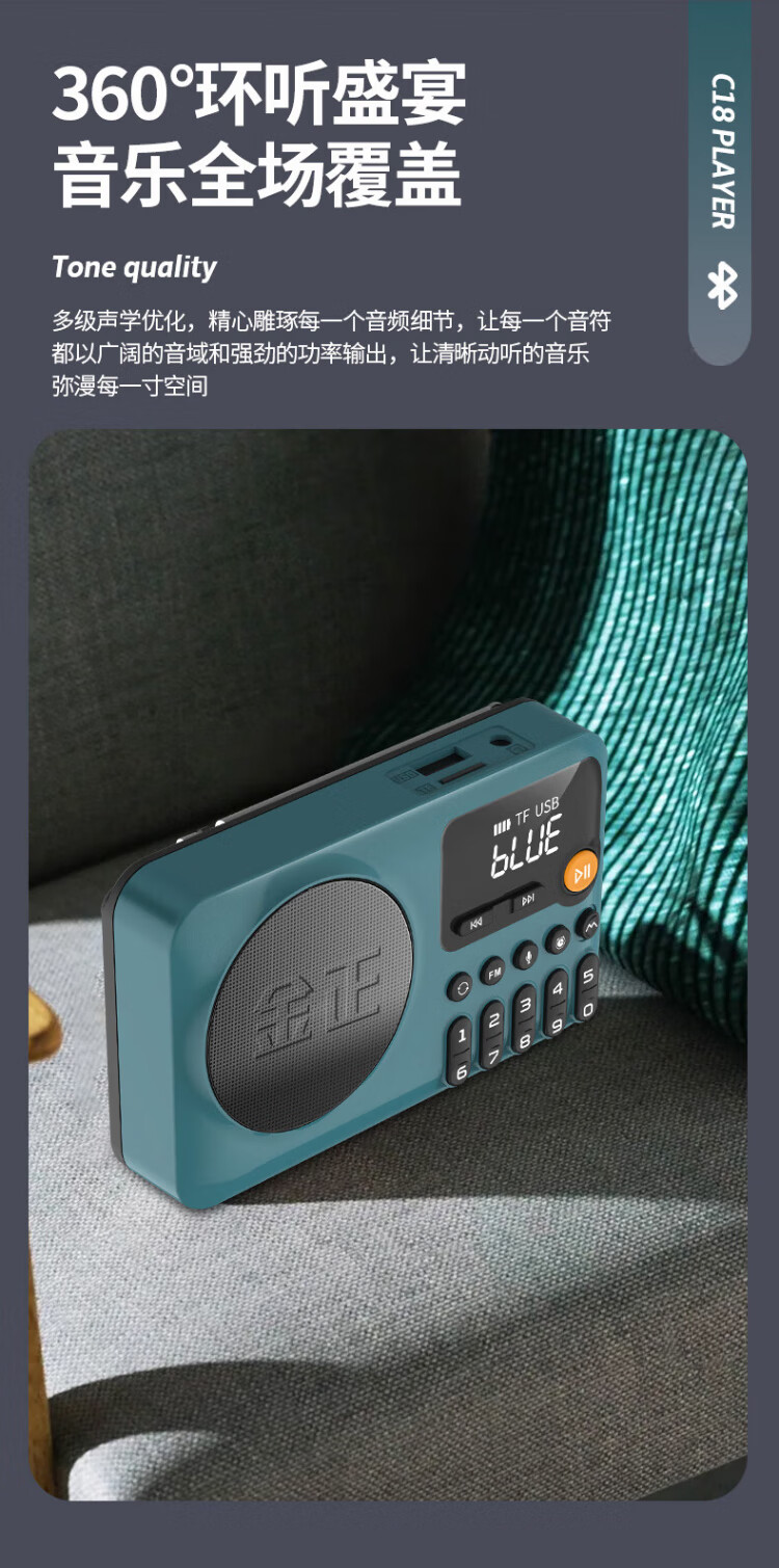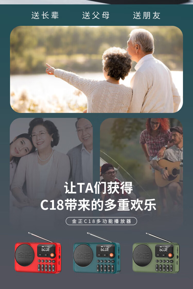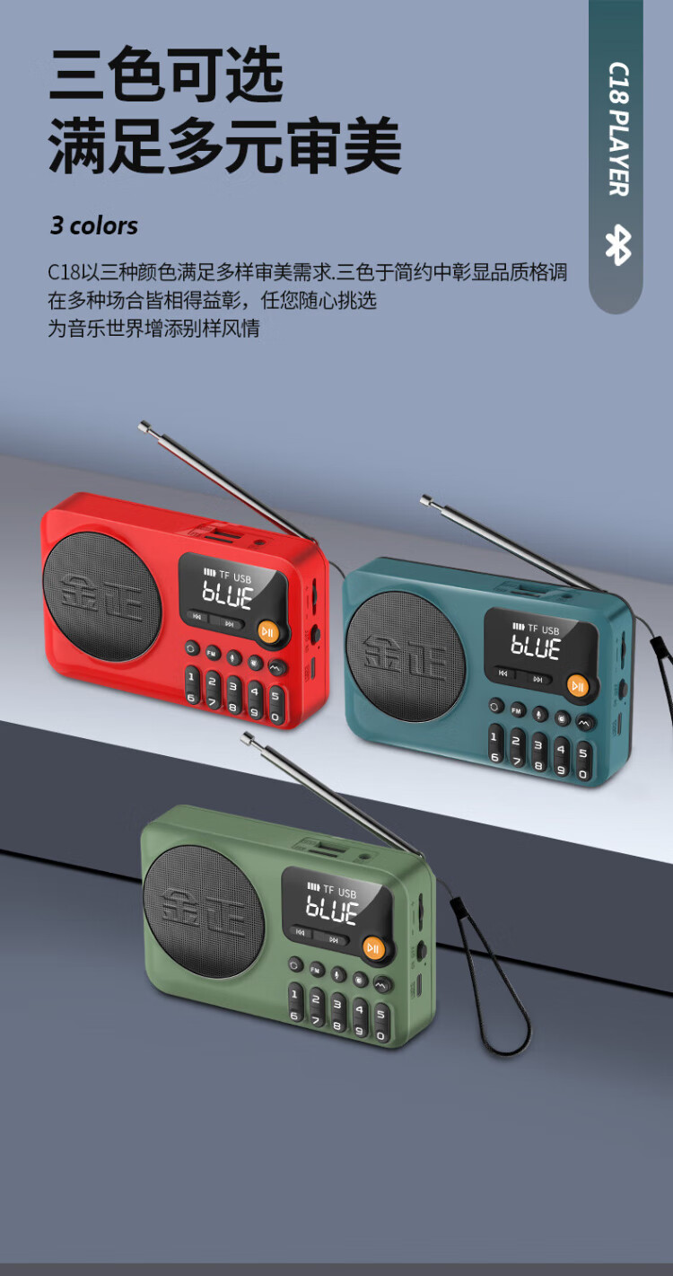 Jinzheng C18 radio for the elderly, a small portable opera and old song music player that can be inserted into a USB flash drive, a walkman for the elderly, a semiconductor FM small speaker