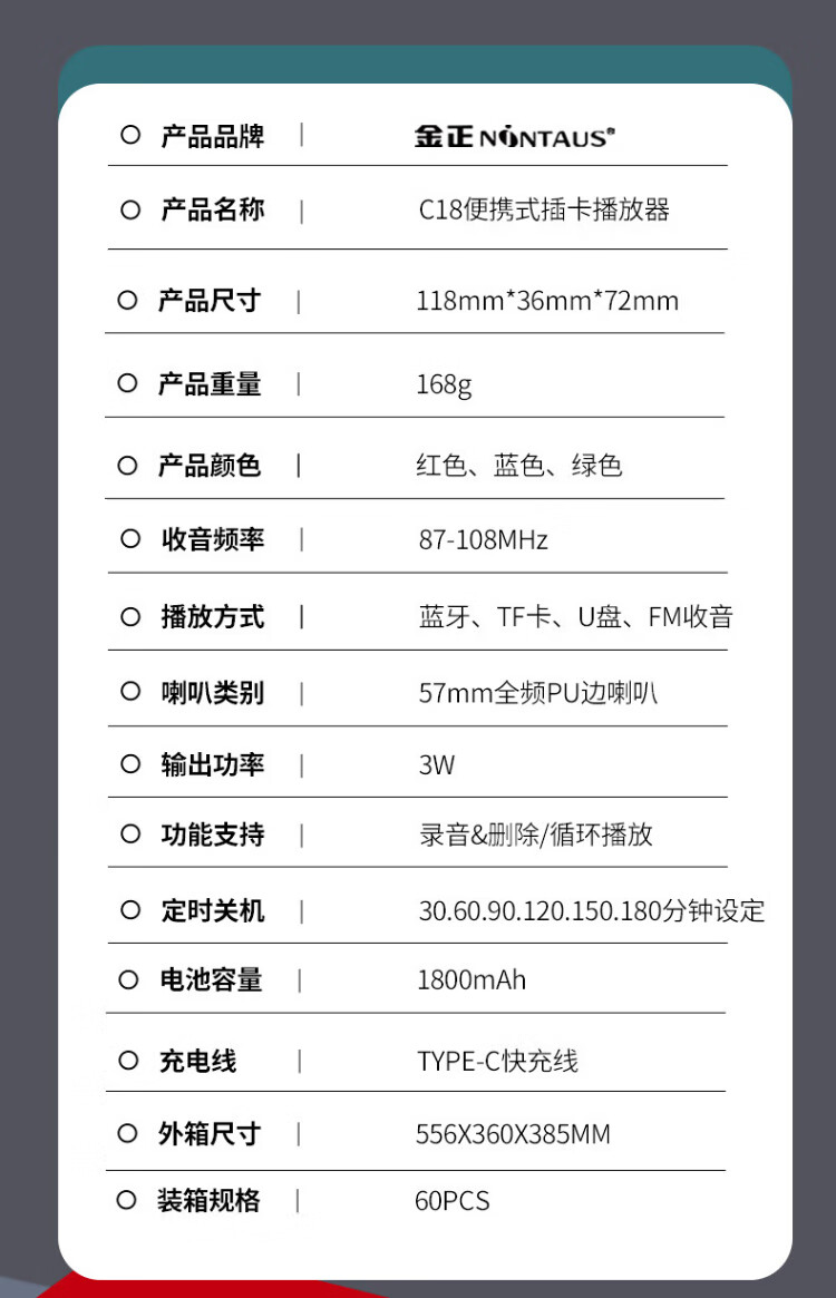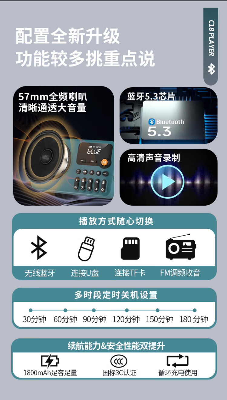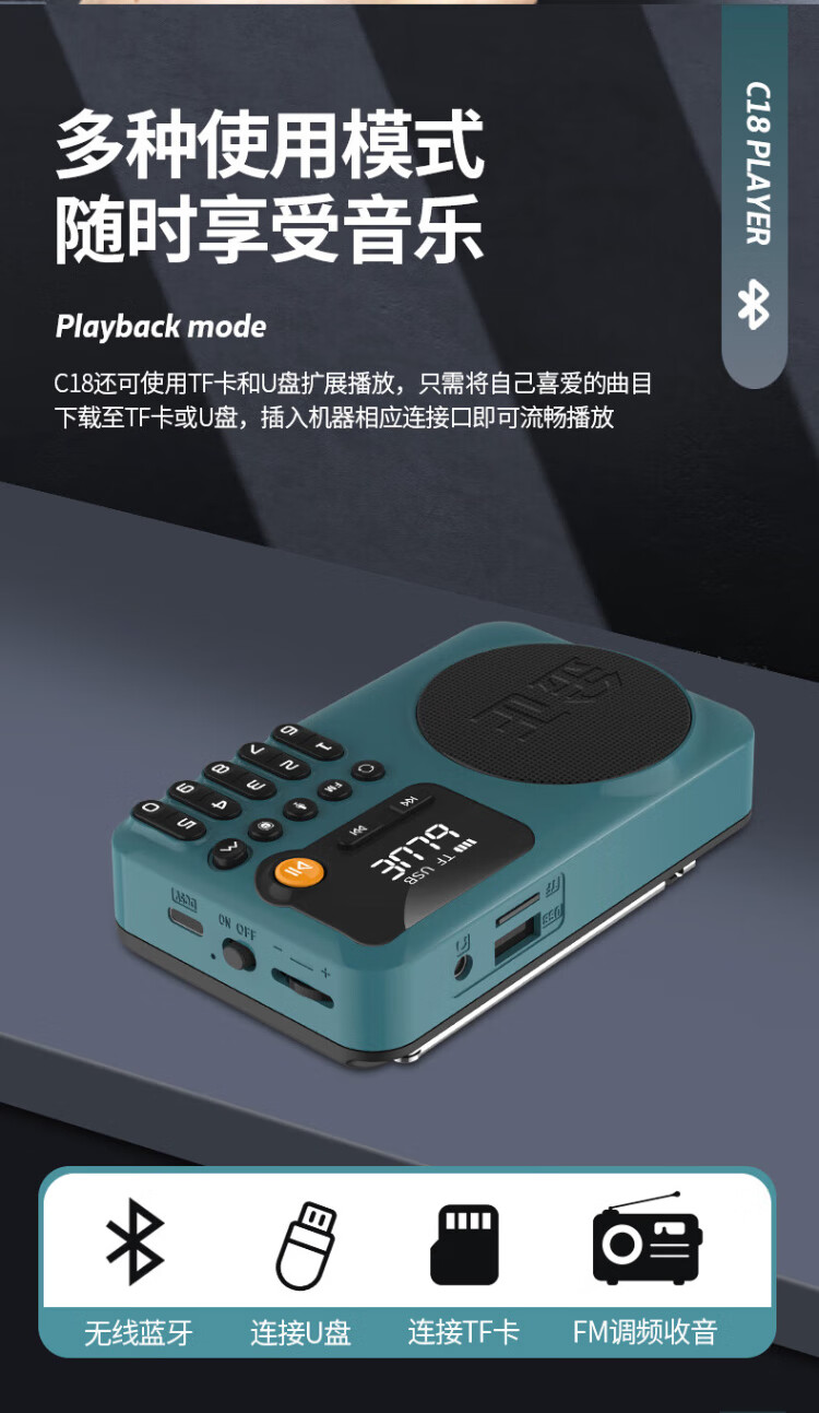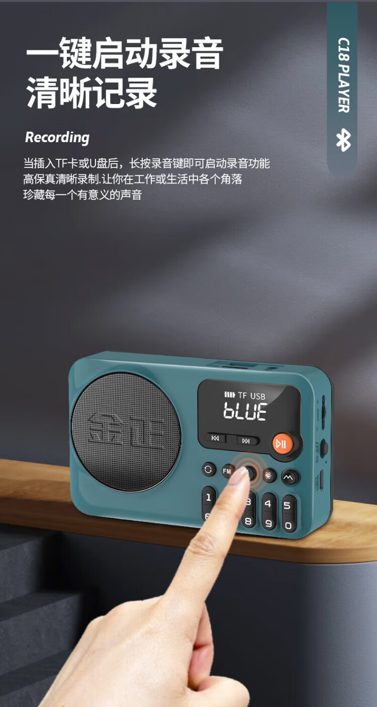 Jinzheng C18 radio for the elderly, a small portable opera and old song music player that can be inserted into a USB flash drive, a walkman for the elderly, a semiconductor FM small speaker