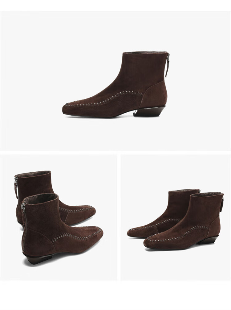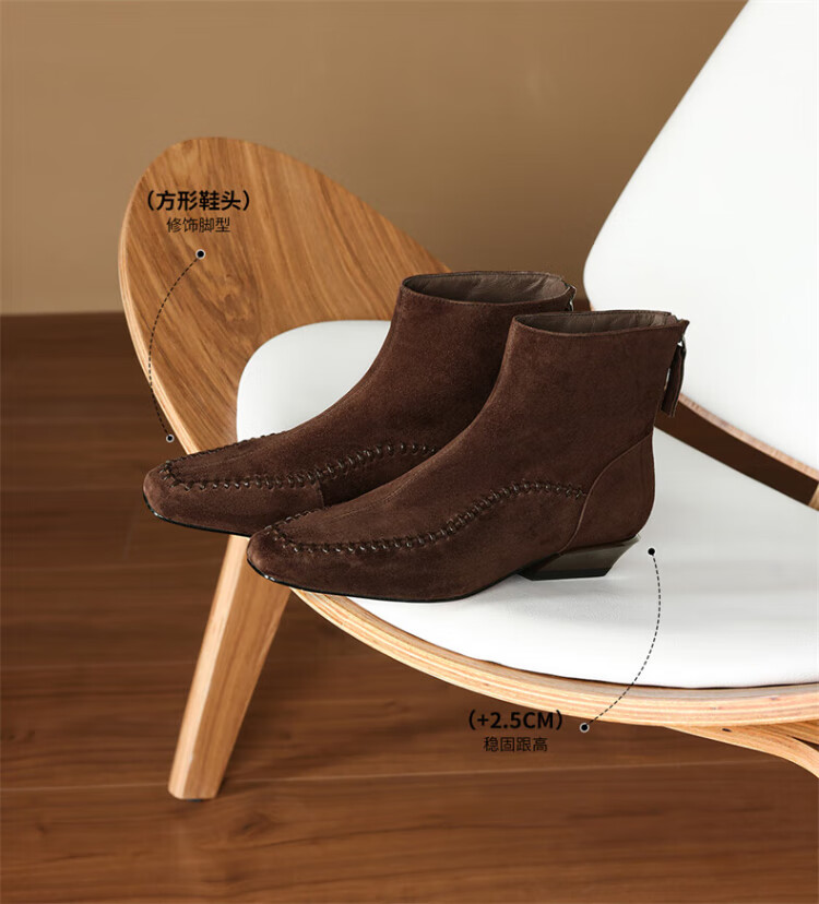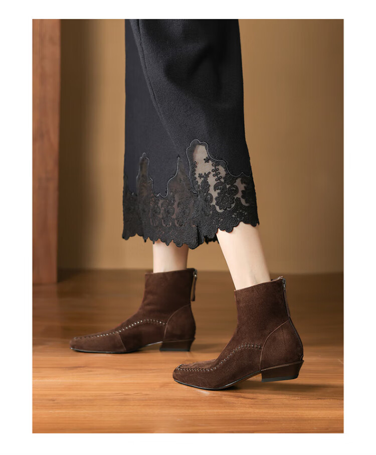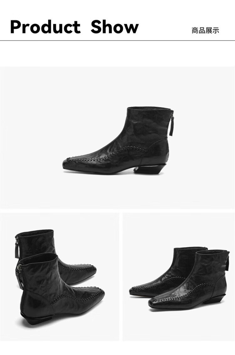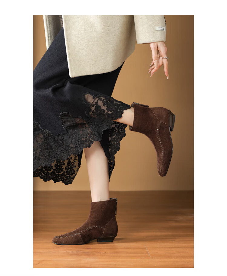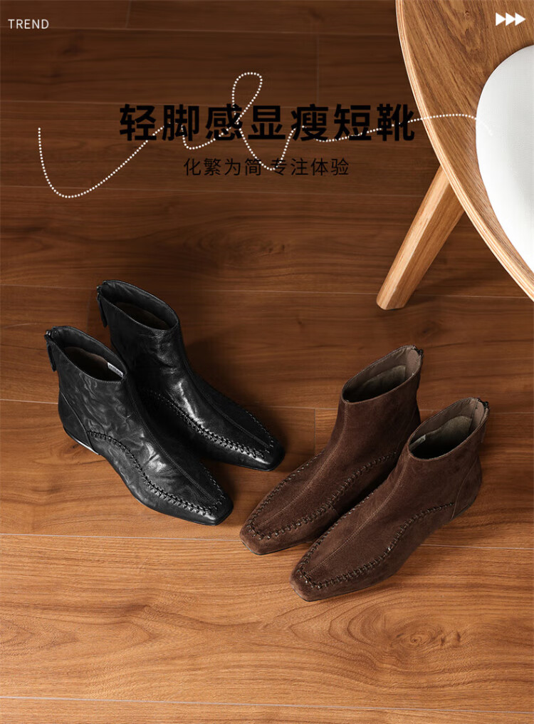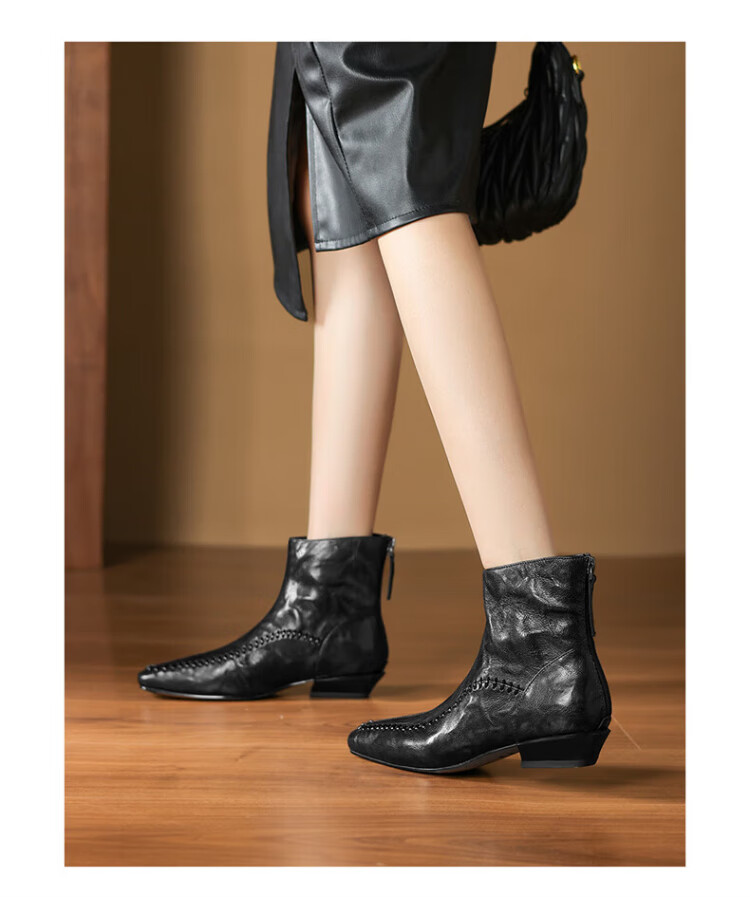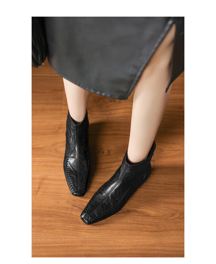 Millies Genuine Leather Sheepskin Ankle Boots Women's Chelsea Slim Boots Plus Velvet Short Boots Women's Square Toe Thick Heel Women's Boots Black 37