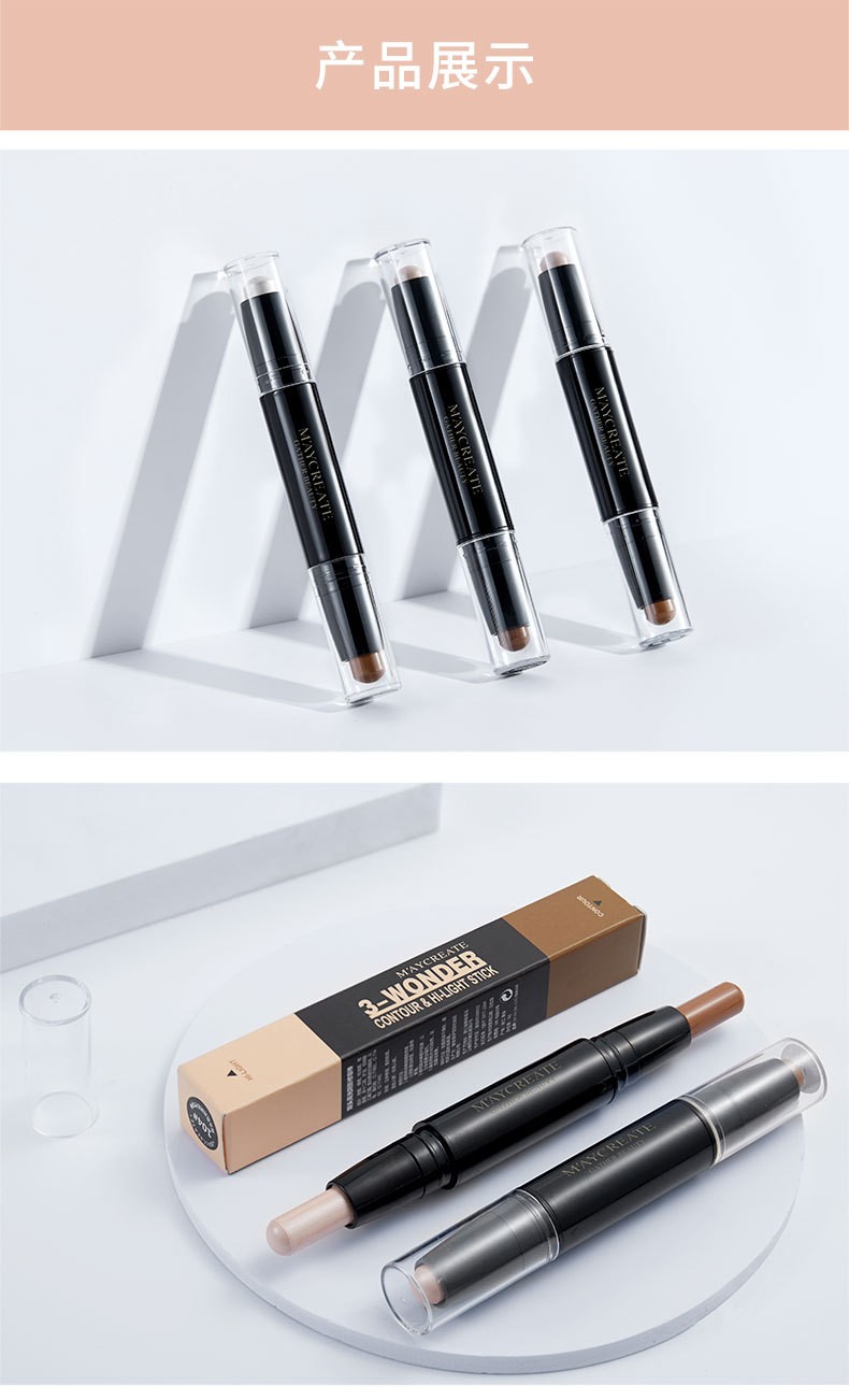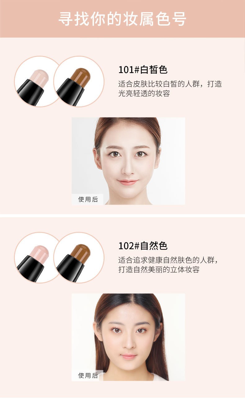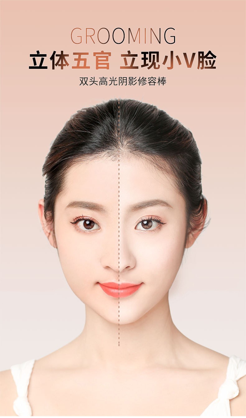 Lamela double-ended contour stick, high-gloss matte fine shimmer, three-in-one palette to brighten face, nose shadow, shadow pen and cream 101# (white + brown)