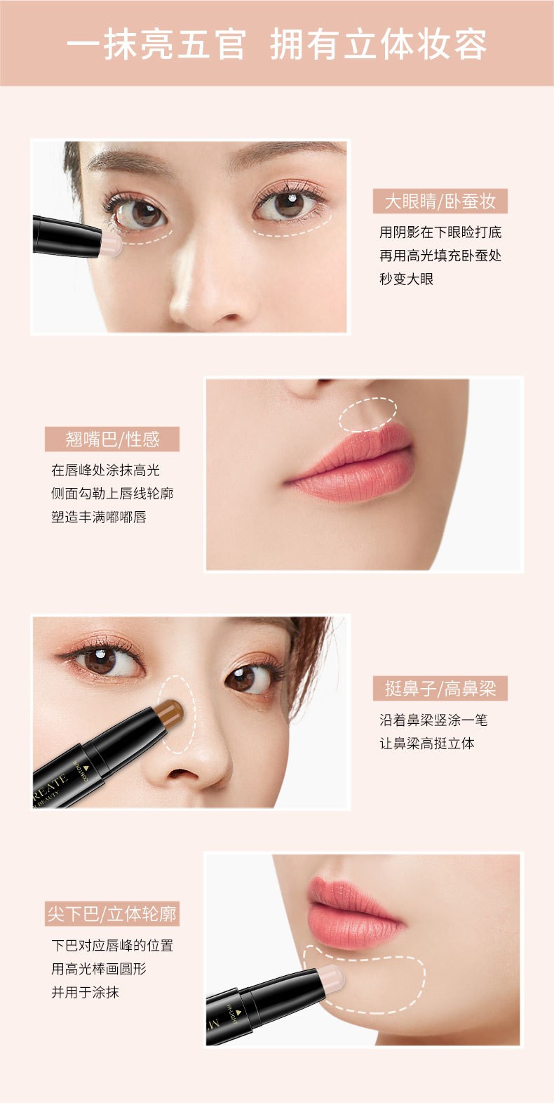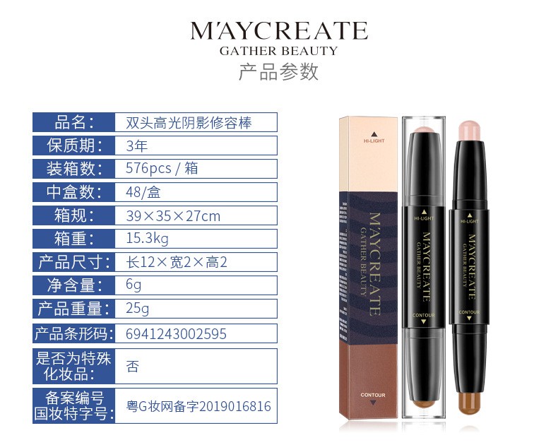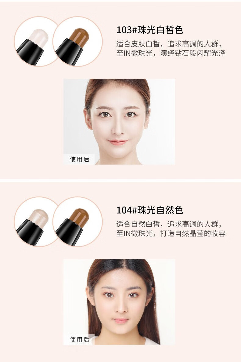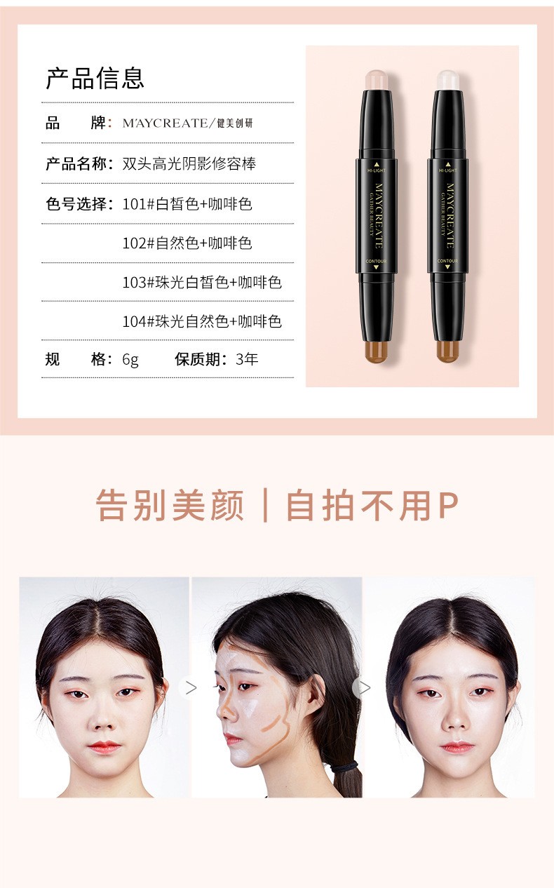 Lamela double-ended contour stick, high-gloss matte fine shimmer, three-in-one palette to brighten face, nose shadow, shadow pen and cream 101# (white + brown)