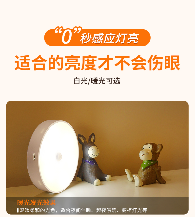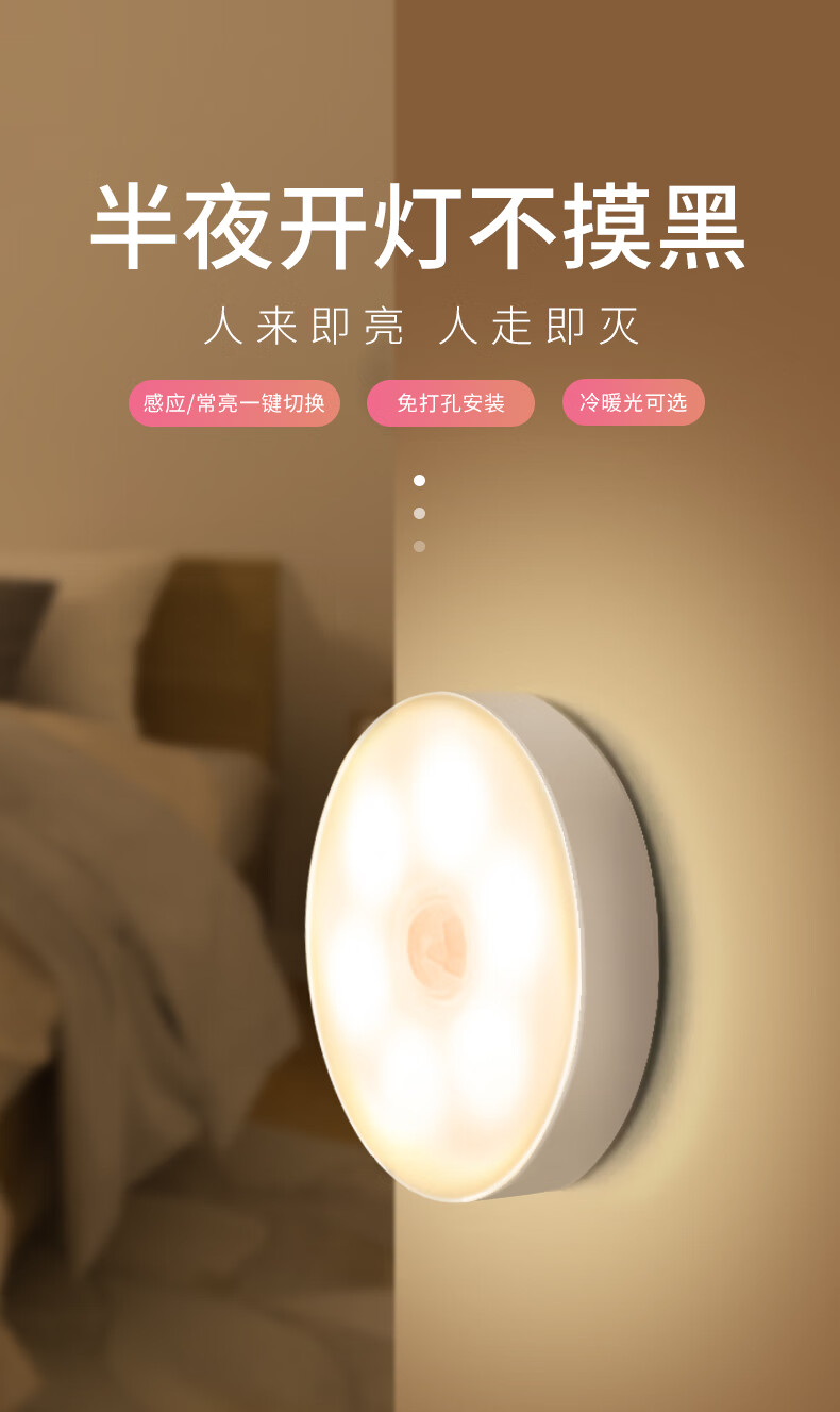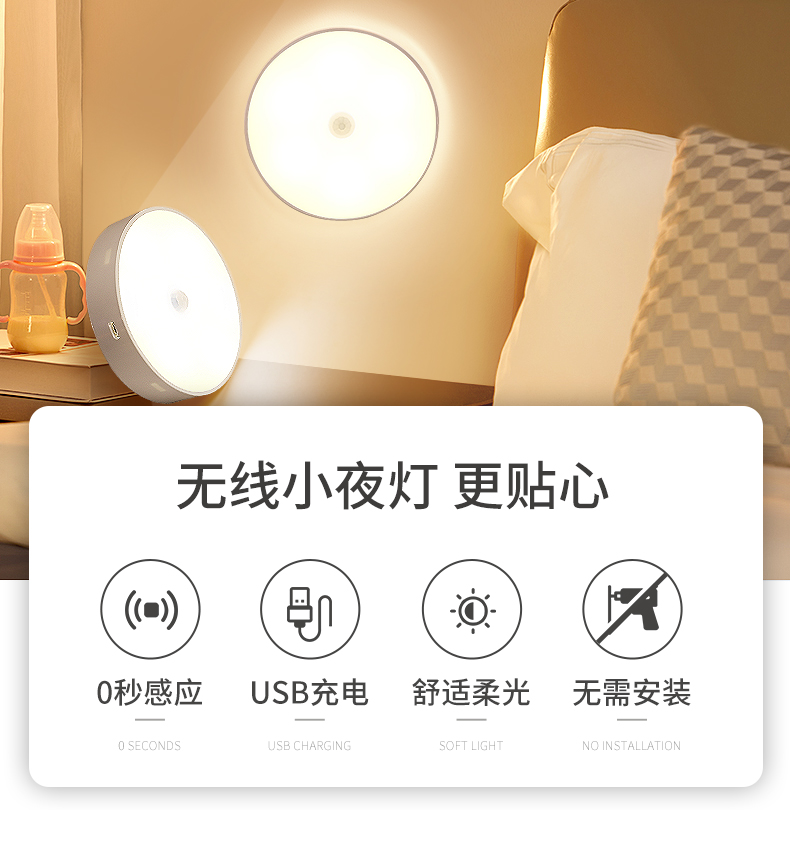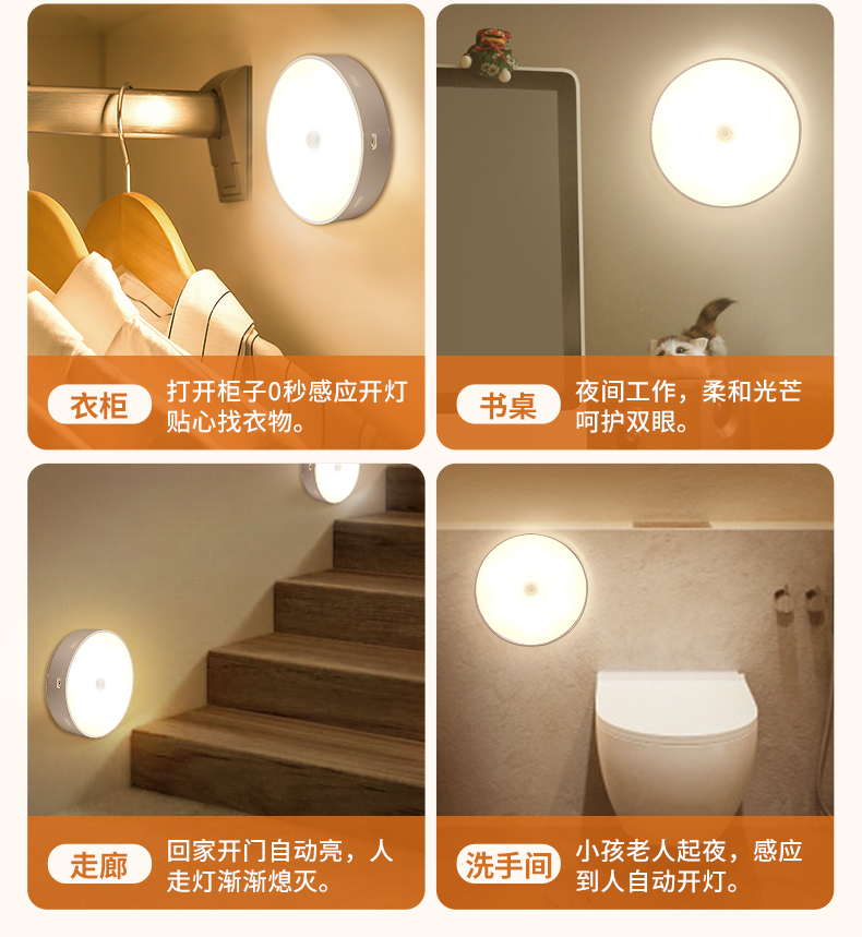 Dajiuwei Human Body Sensor Lamp Smart Night Light LED Light Control Charging Home Wardrobe Aisle Corridor Wiring-free Bedside Lamp White Light Charging Induction Model