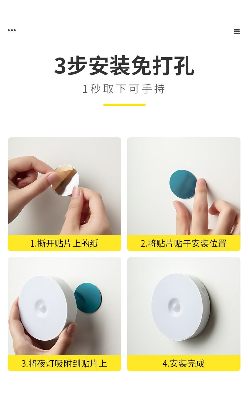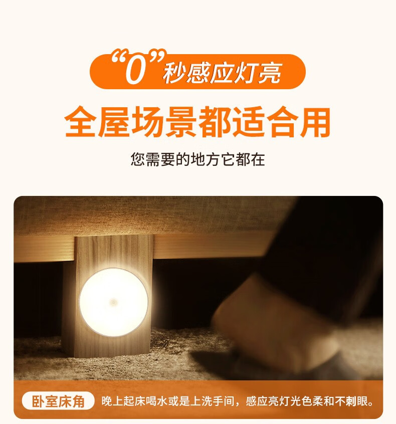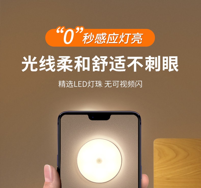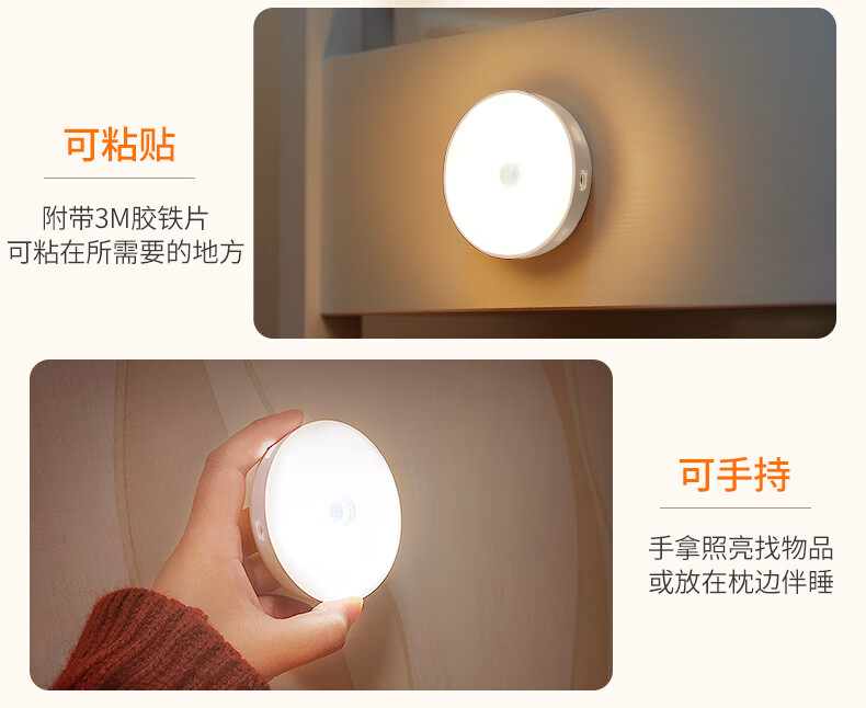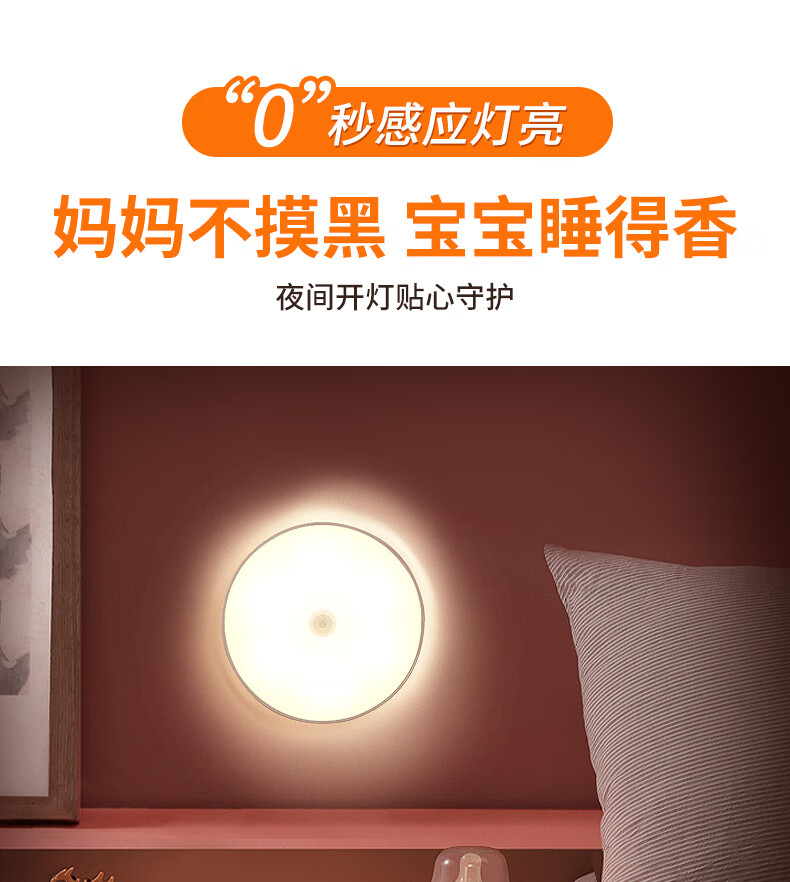 Dajiuwei Human Body Sensor Lamp Smart Night Light LED Light Control Charging Home Wardrobe Aisle Corridor Wiring-free Bedside Lamp White Light Charging Induction Model