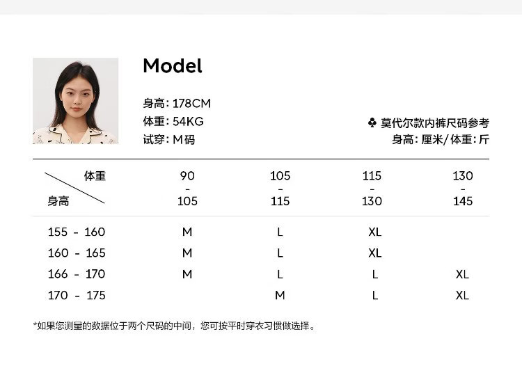 China (cm) 160-165/84-86 165-170 / 88-90 167-172 / 92-96 168-173 / 98-102 170-176 / 106-110