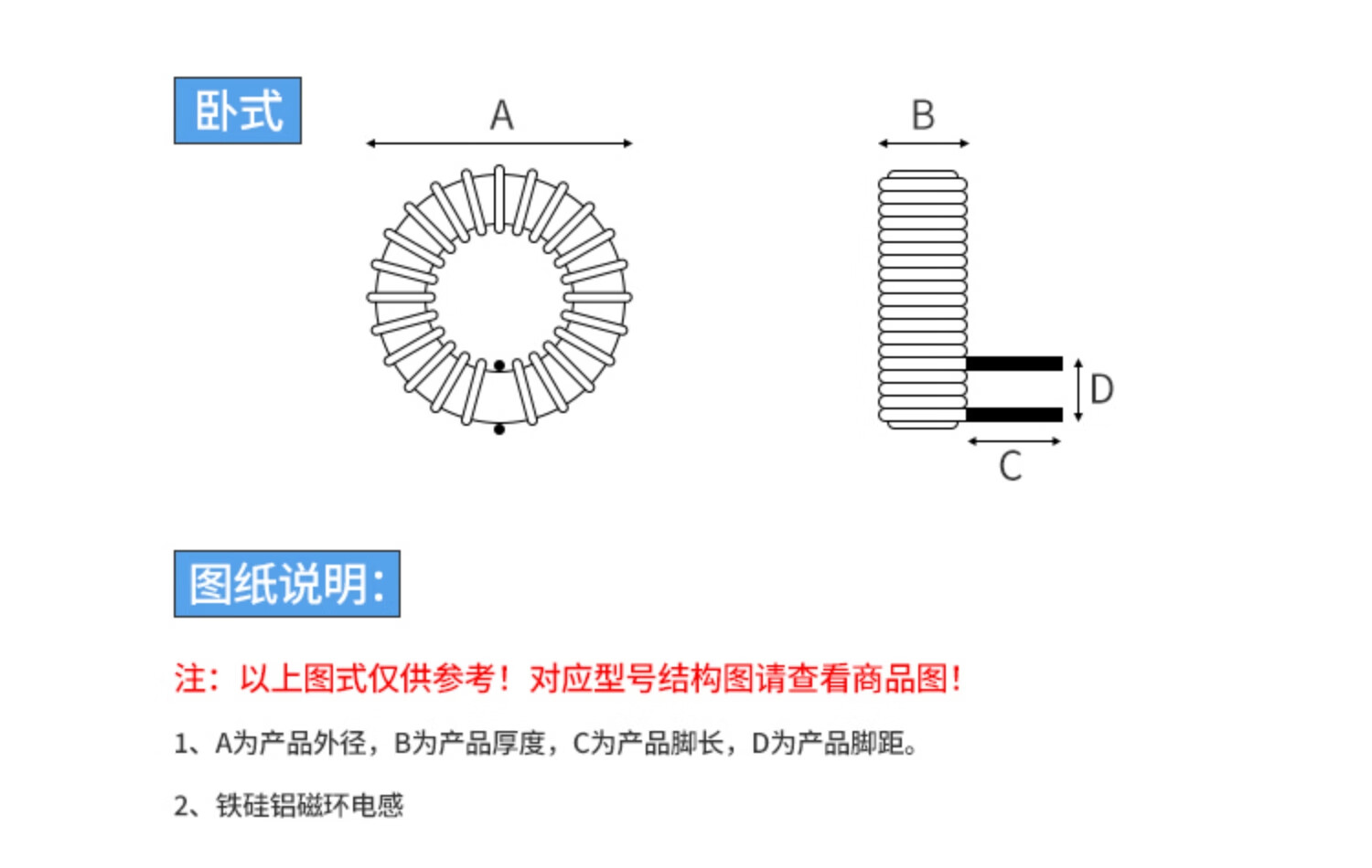 Hanshi Hengye Iron-silicon-aluminum inductor coil 33uH 0.8 wire 6A horizontal/100 pieces