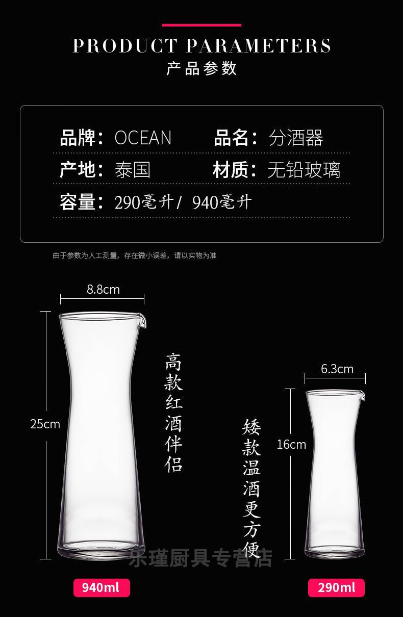 Ouxin imported glass wine pourer with mouth, red wine decanter, white wine divider, male cup, household wine divider, white wine measuring cup, 290ML small size
