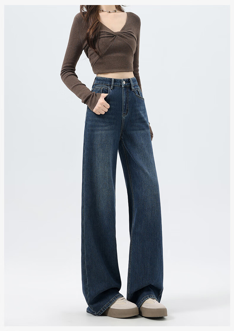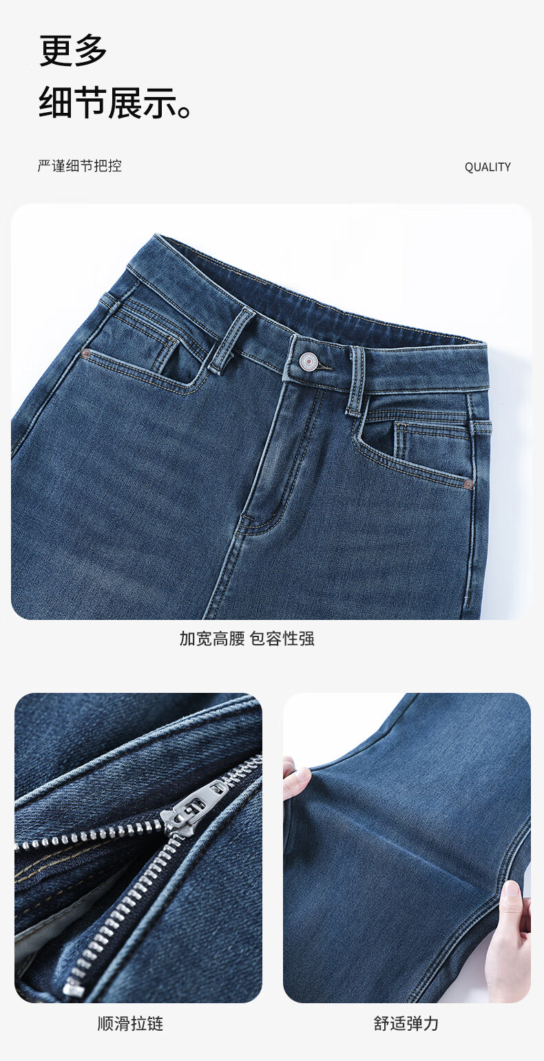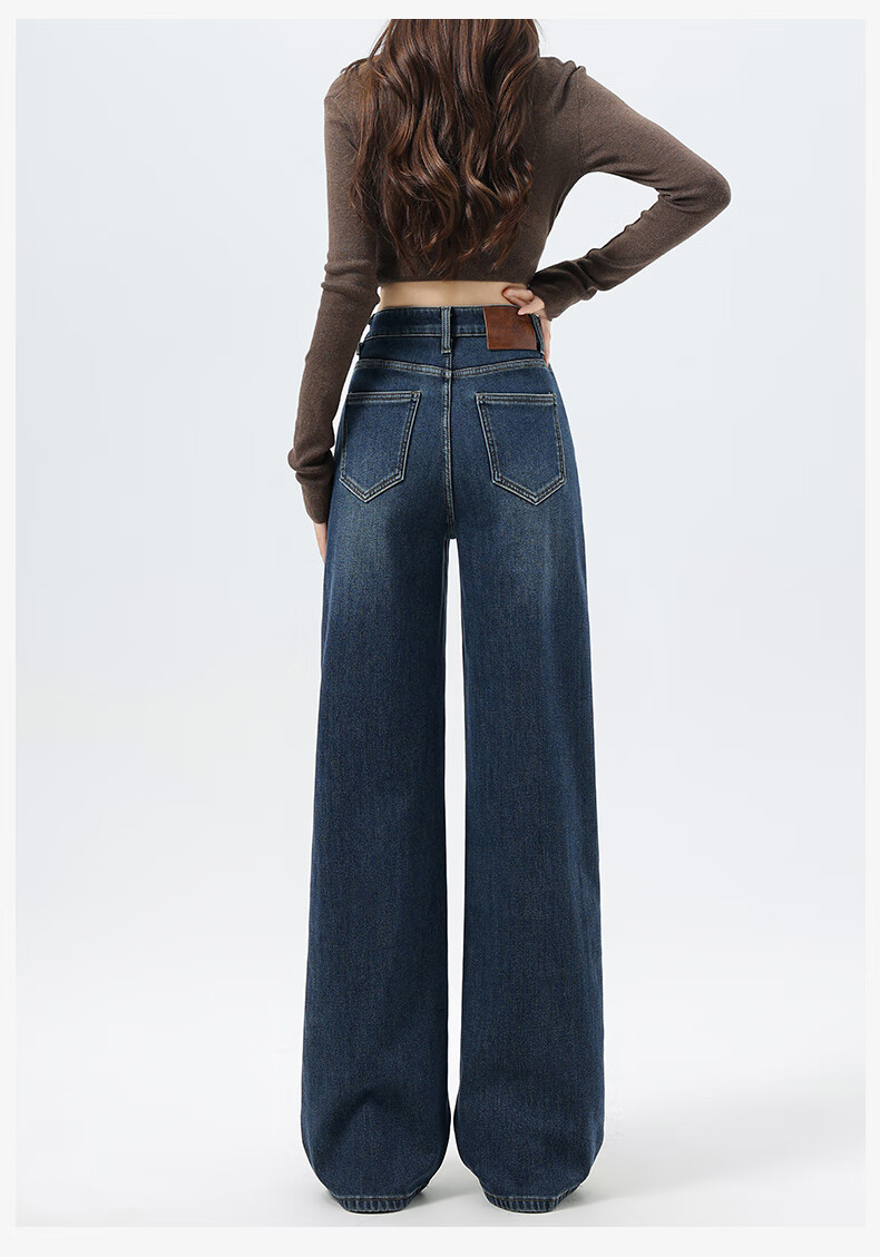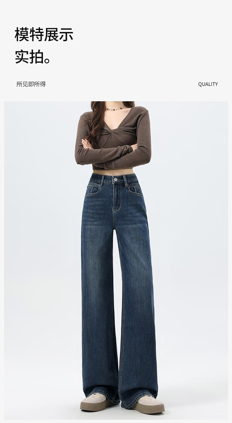La Chapelle women's jeans with velvet and thickening 2025 autumn and winter new high-waisted hip-covering slimming and versatile straight pants