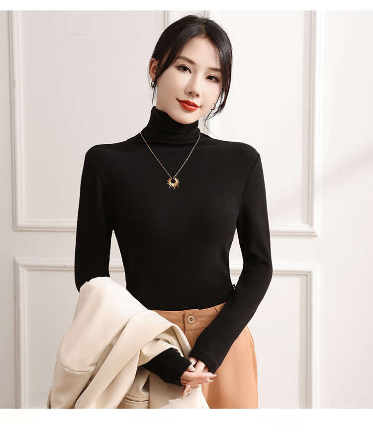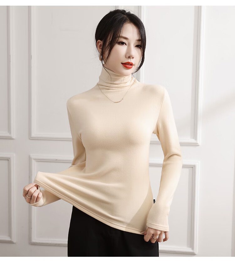 Tingmei pile-collar bottoming shirt for women, which can be worn outside and style, autumn and winter thickened brushed turtleneck thermal underwear t-shirt top