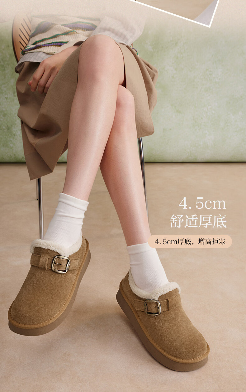 Best Picture 25 Winter Birkenstock Shoes Fashionable Retro Casual Plus Velvet Warm Women's Shoes N2539DM5 Camel 36