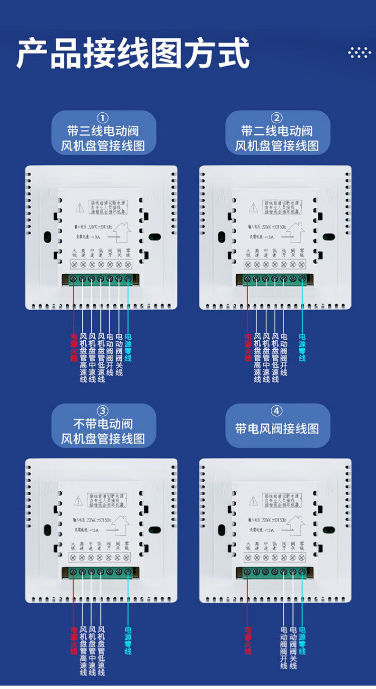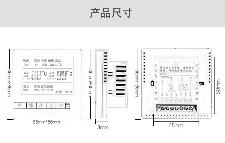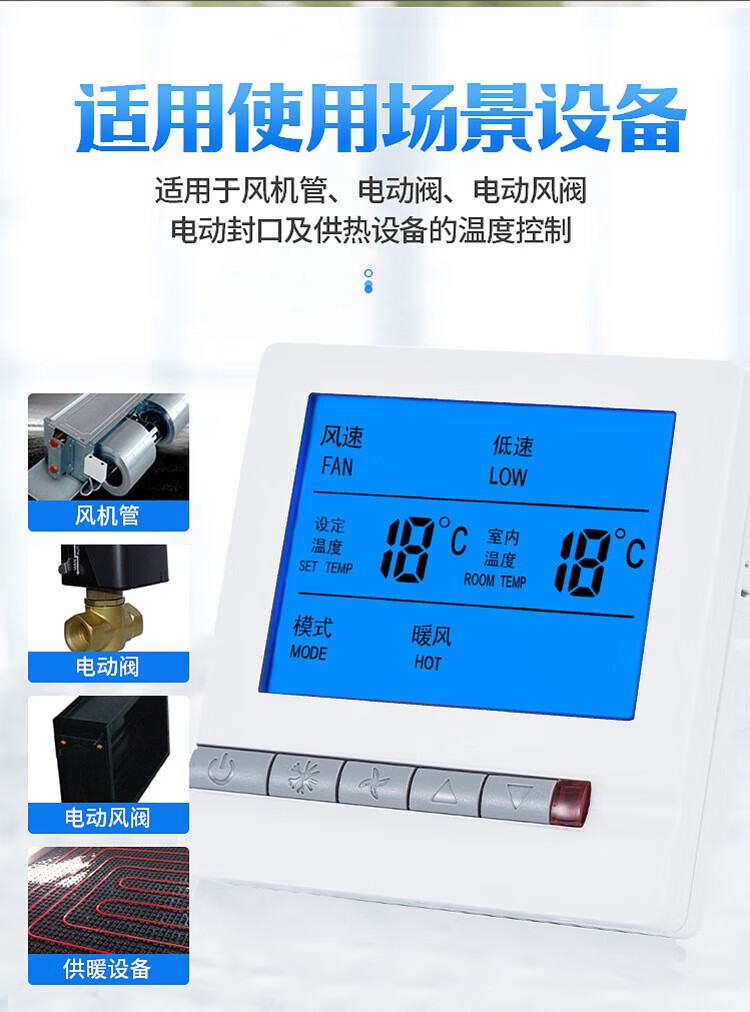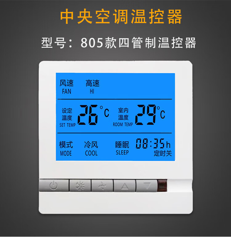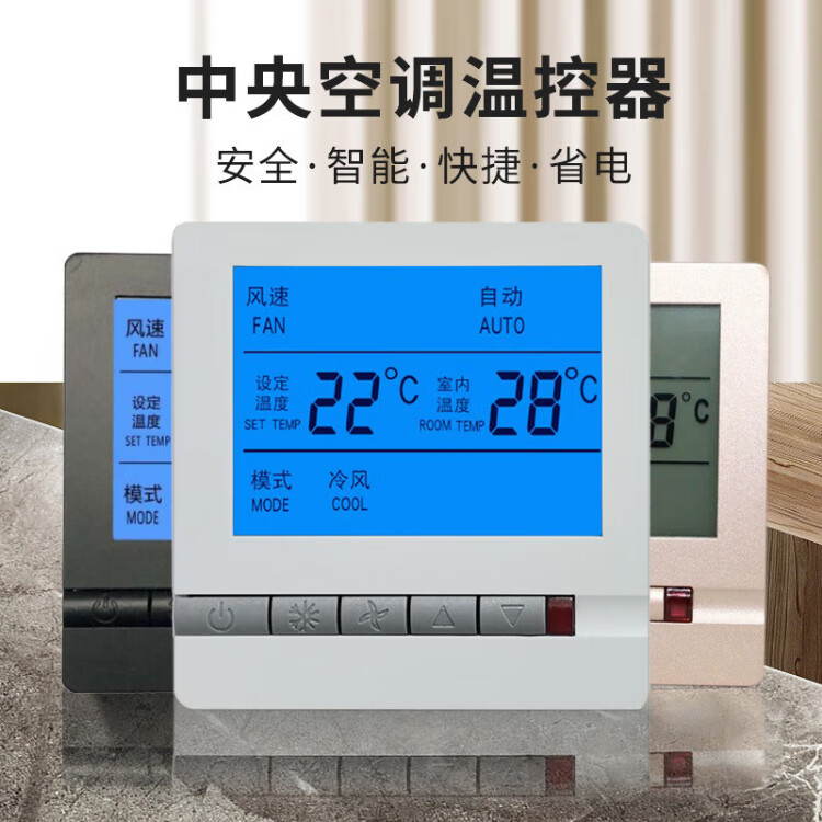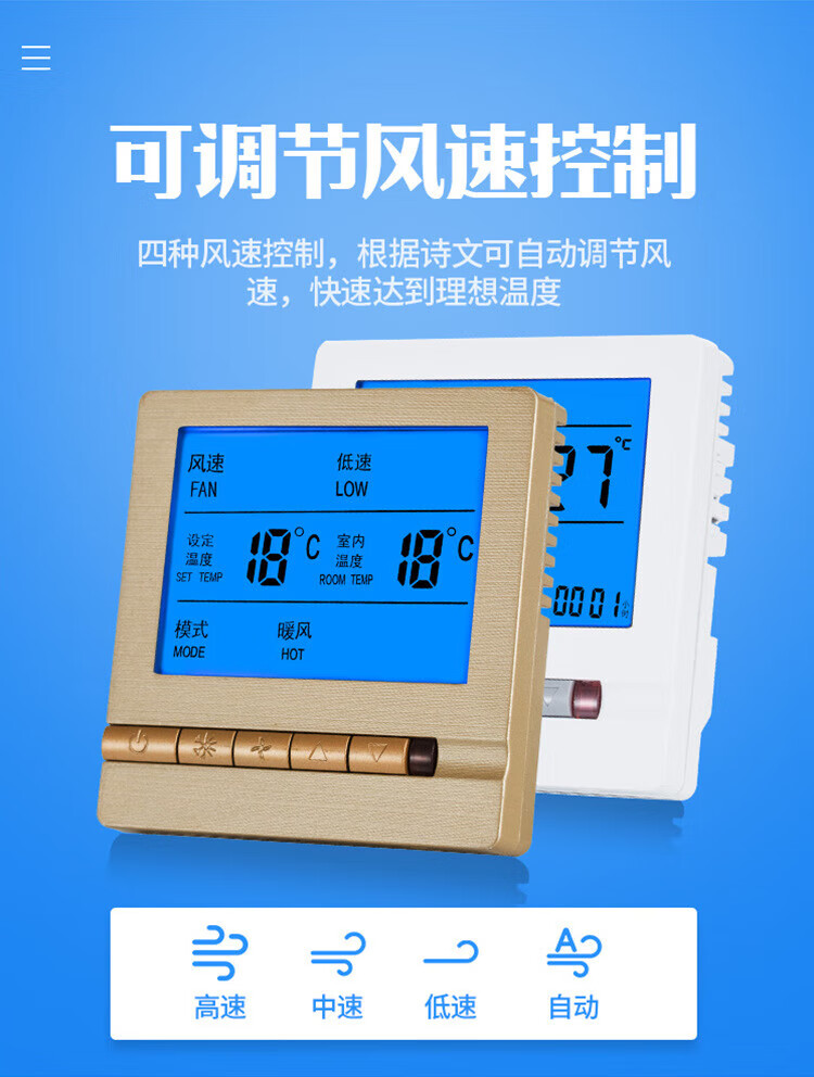Tianshili central air conditioning LCD thermostat switch water-cooled fan coil line intelligent remote control three-speed switch control panel remote control function + remote control (white)