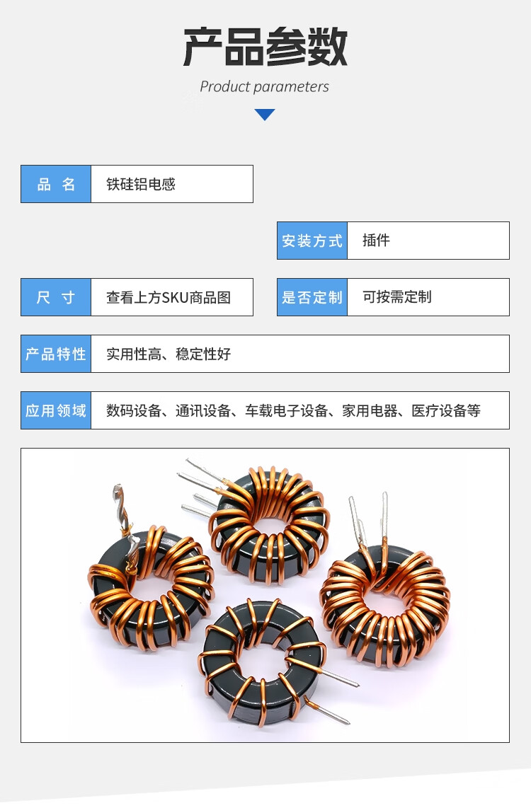 Hanshi Hengye Iron-silicon-aluminum ring inductor magnetic ring inductor 8uH dual 1.6 wires 35A horizontal twist pin/10 pcs