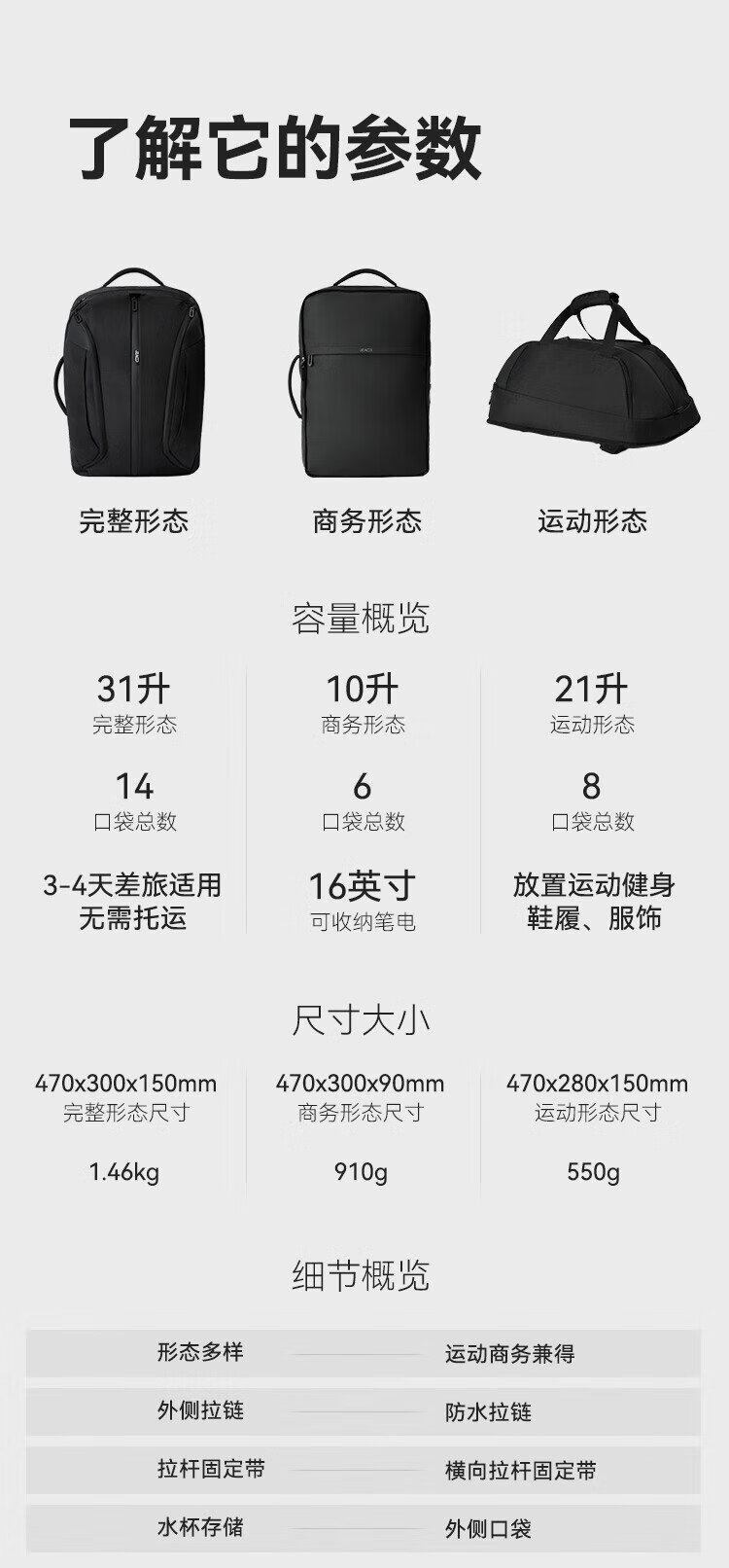 Made in Tokyo, Easy Go three-in-one detachable Big Mac large-capacity computer bag business sports backpack 16 inches