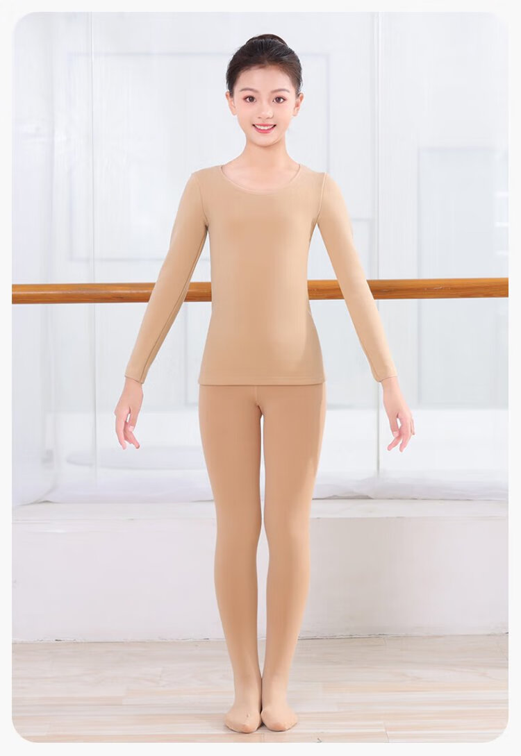 Gunia children's dance clothing winter thickened velvet warm bottoming dance performance practice clothing white top L