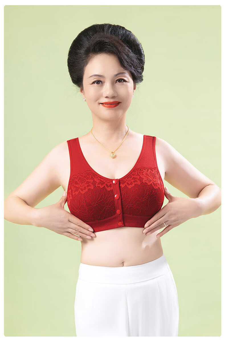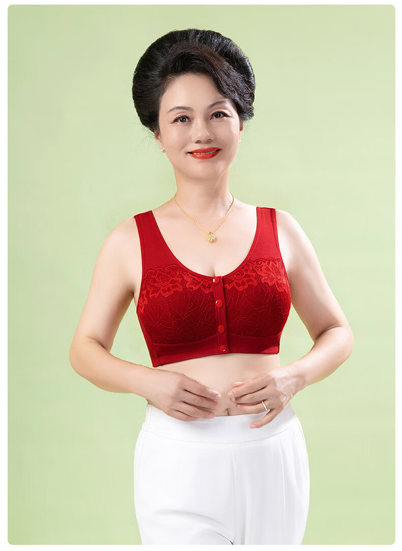 LangSha (LangSha) big red bra for middle-aged and elderly people, unbuttoned in the year of the horse, pure cotton to close the secondary breasts, zodiac year, Qiji red, beautiful back mother's bra