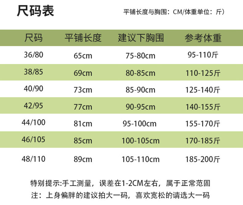 Size (cm) 42 44 46 48 50