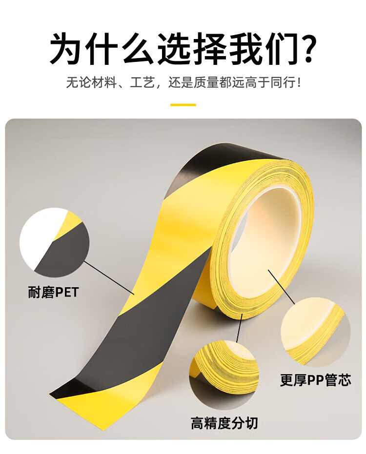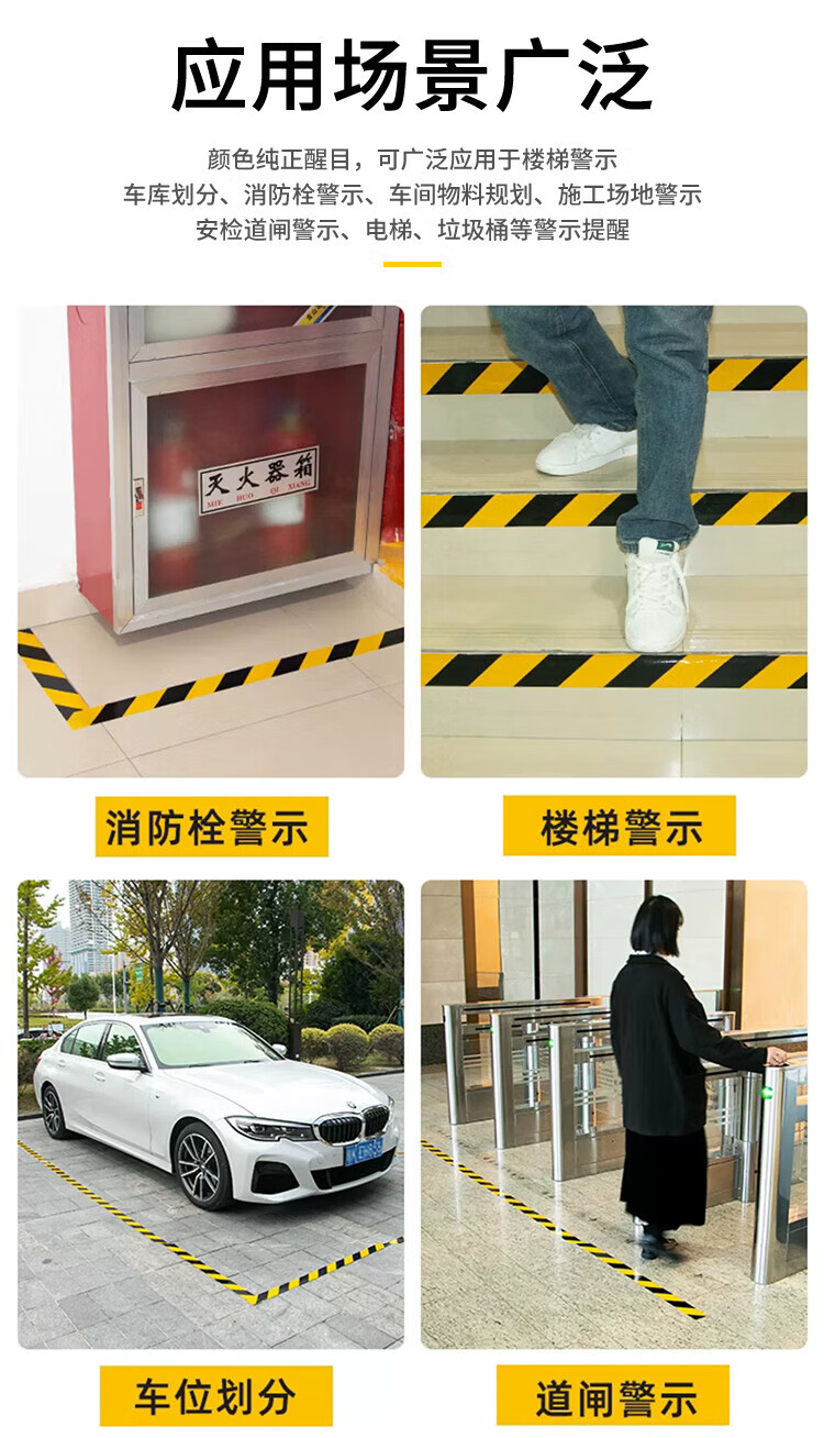 Andatong warning yellow and black zebra crossing tape color safety floor label fire PET 48mm*18m 1 roll