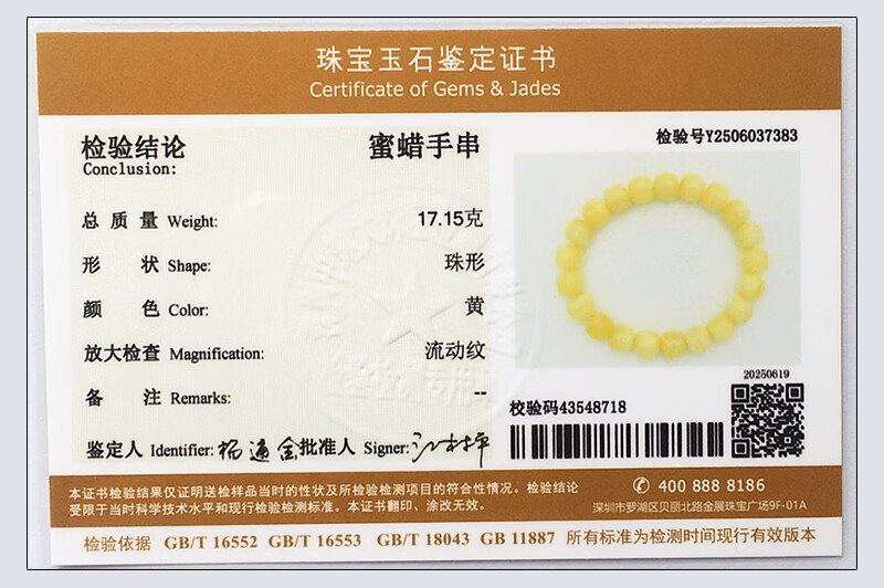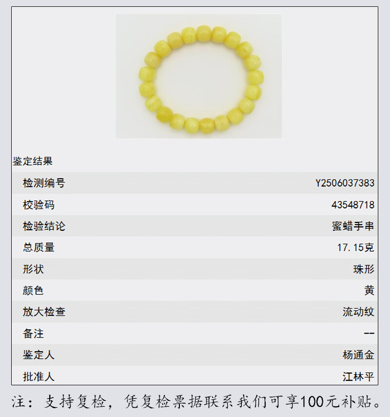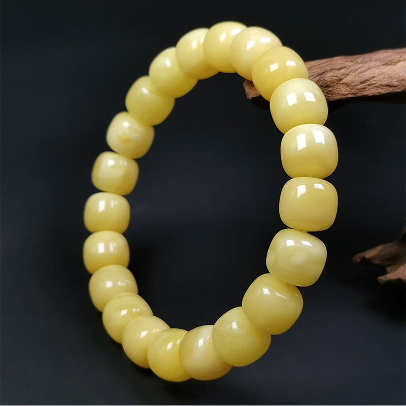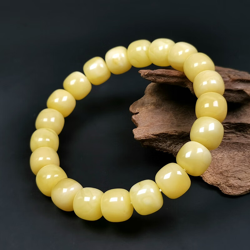 Hupai, one thing, one picture, one certificate, natural beeswax bracelet, men's and women's bucket bead bracelet, original white flower wax, no cracks, beeswax bracelet, 17.15g, 11*10mm