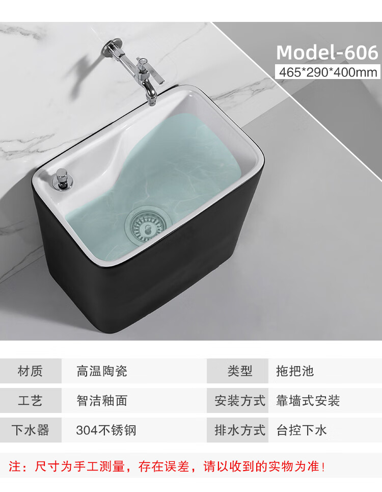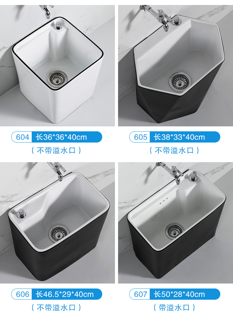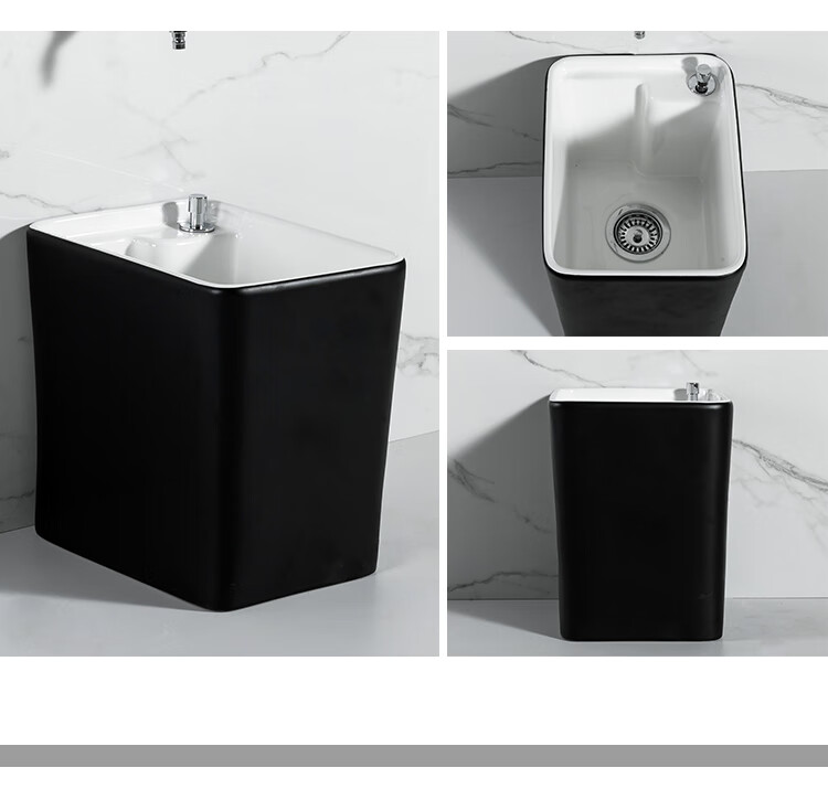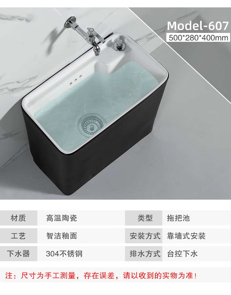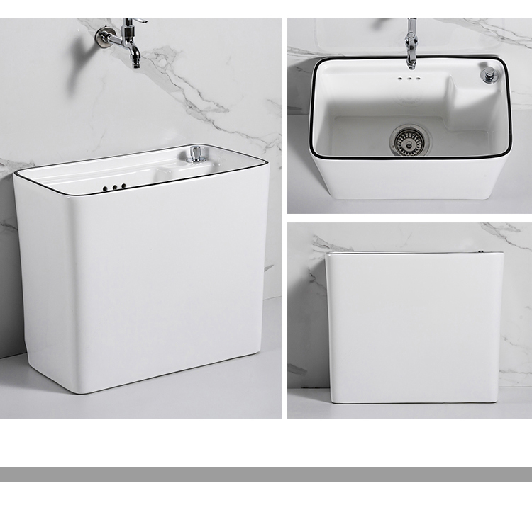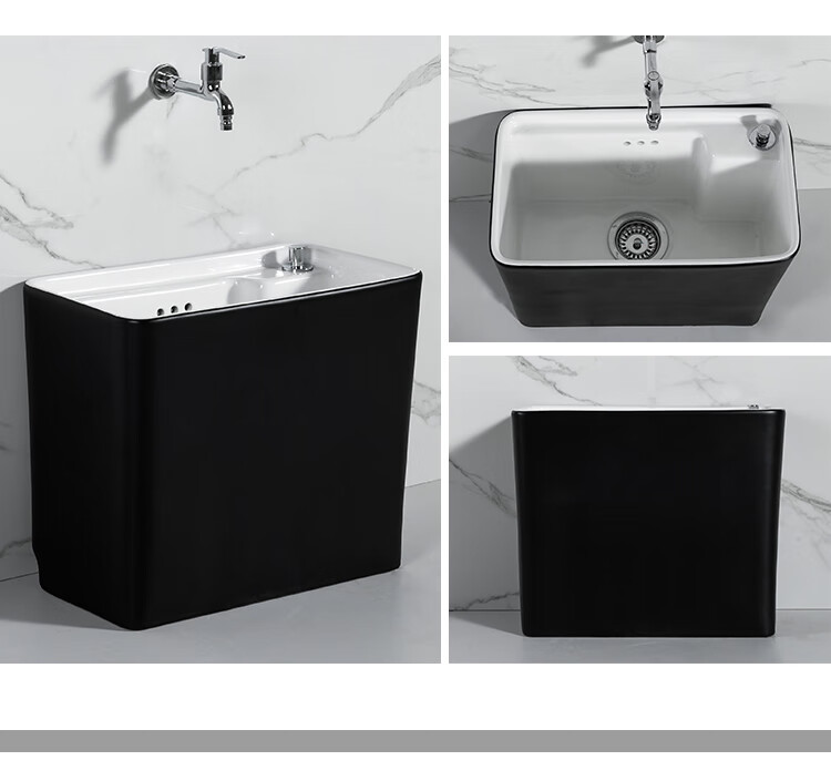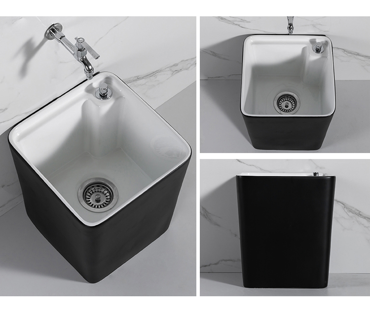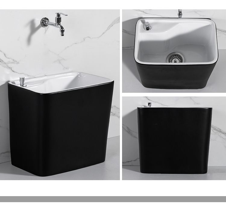 Guanmu Ceramic Mop Pool Balcony Large Mop Pool Household Mop Pool Floor-standing Washing Mop Black White Bathroom Small Washing Mop Tank 601+ Taiwan Controlled Water Set