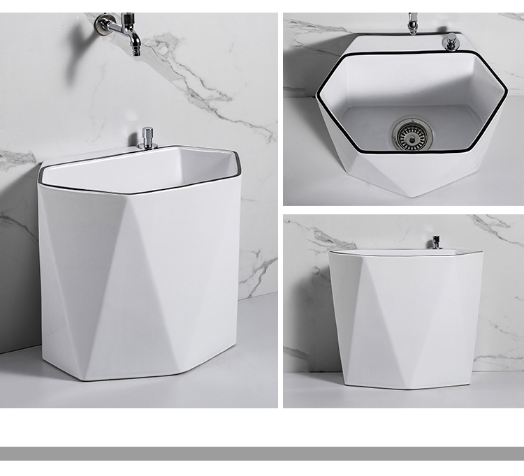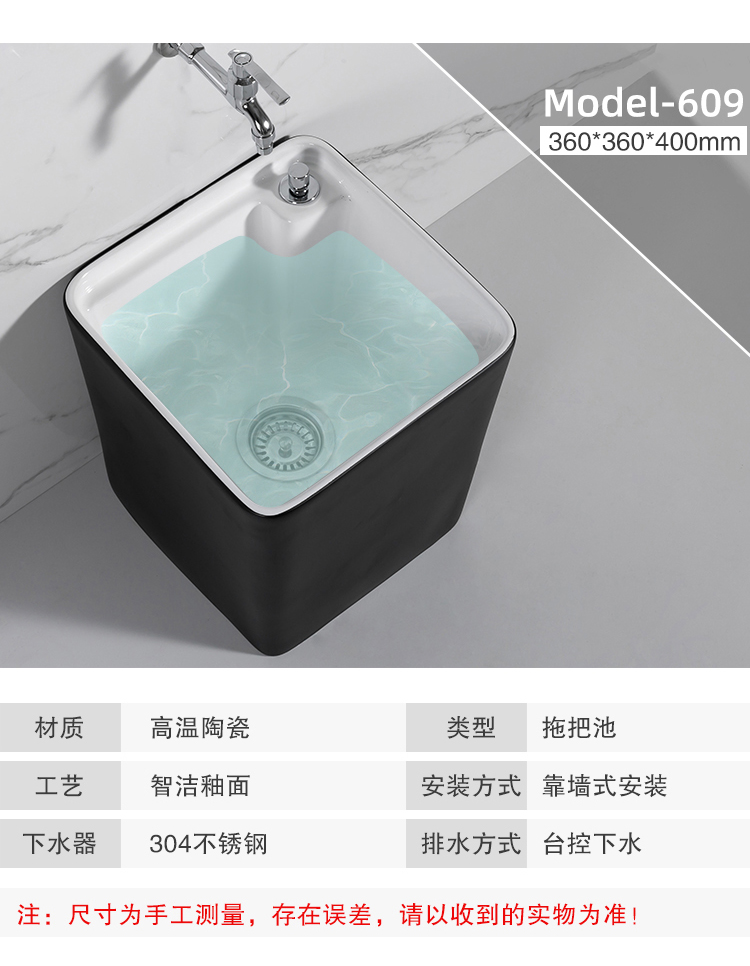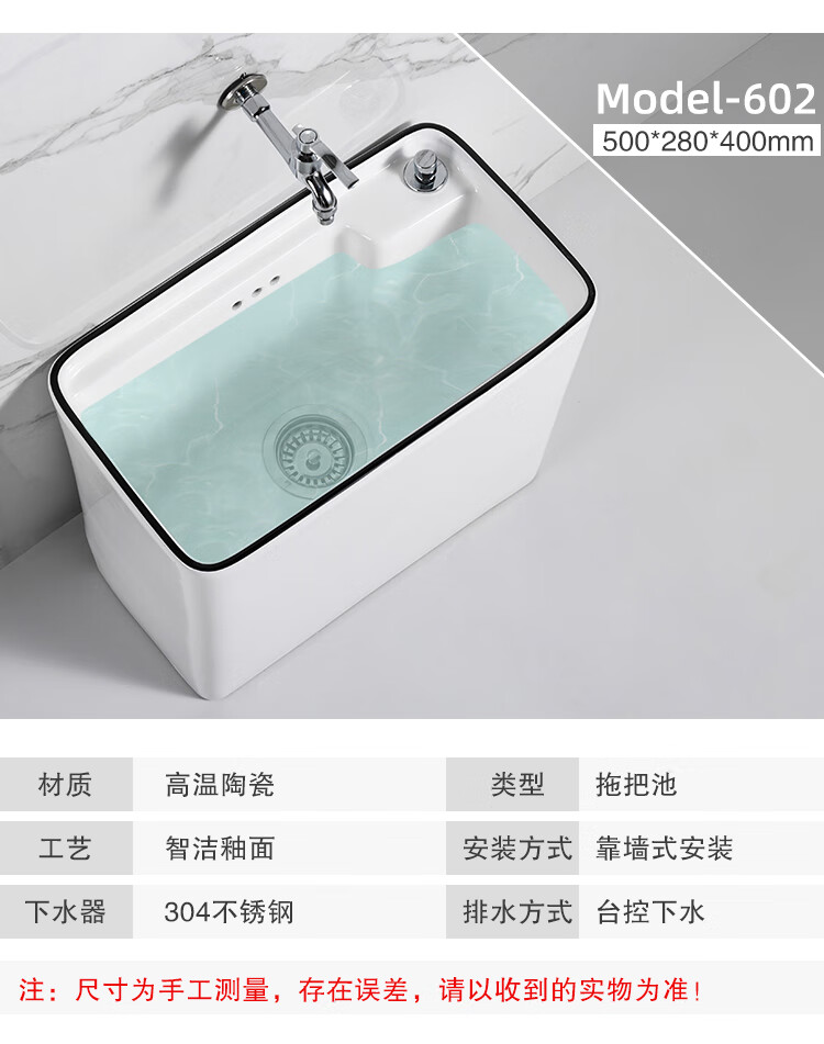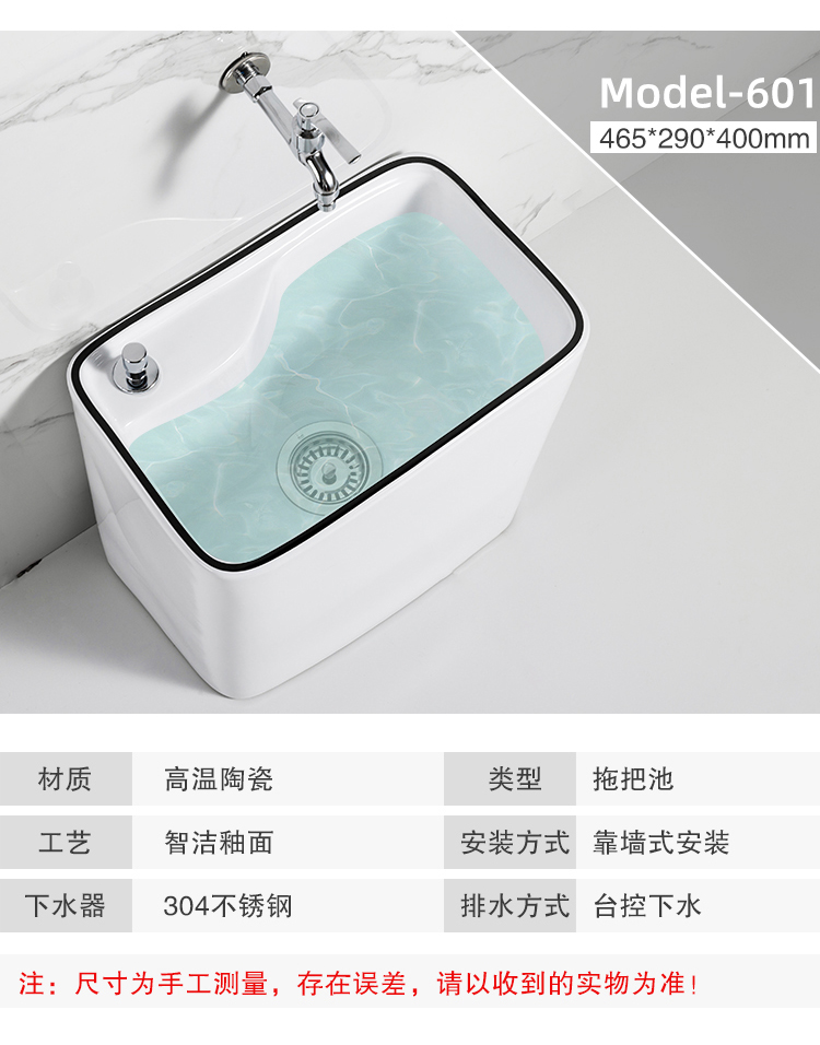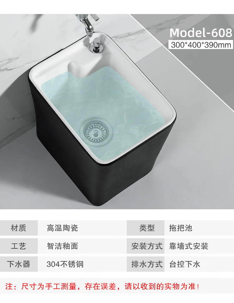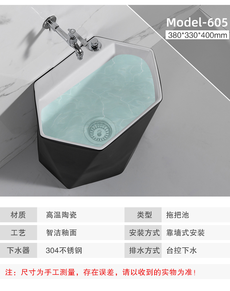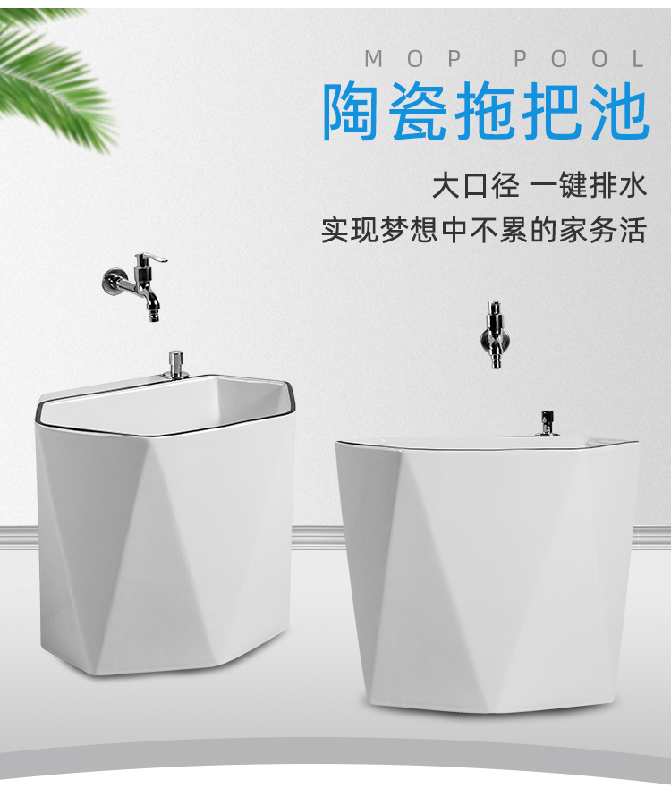 Guanmu Ceramic Mop Pool Balcony Large Mop Pool Household Mop Pool Floor-standing Washing Mop Black White Bathroom Small Washing Mop Tank 601+ Taiwan Controlled Water Set