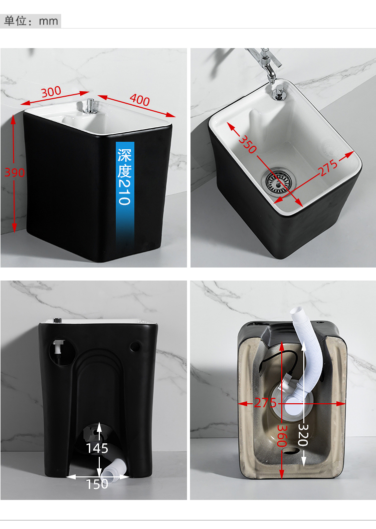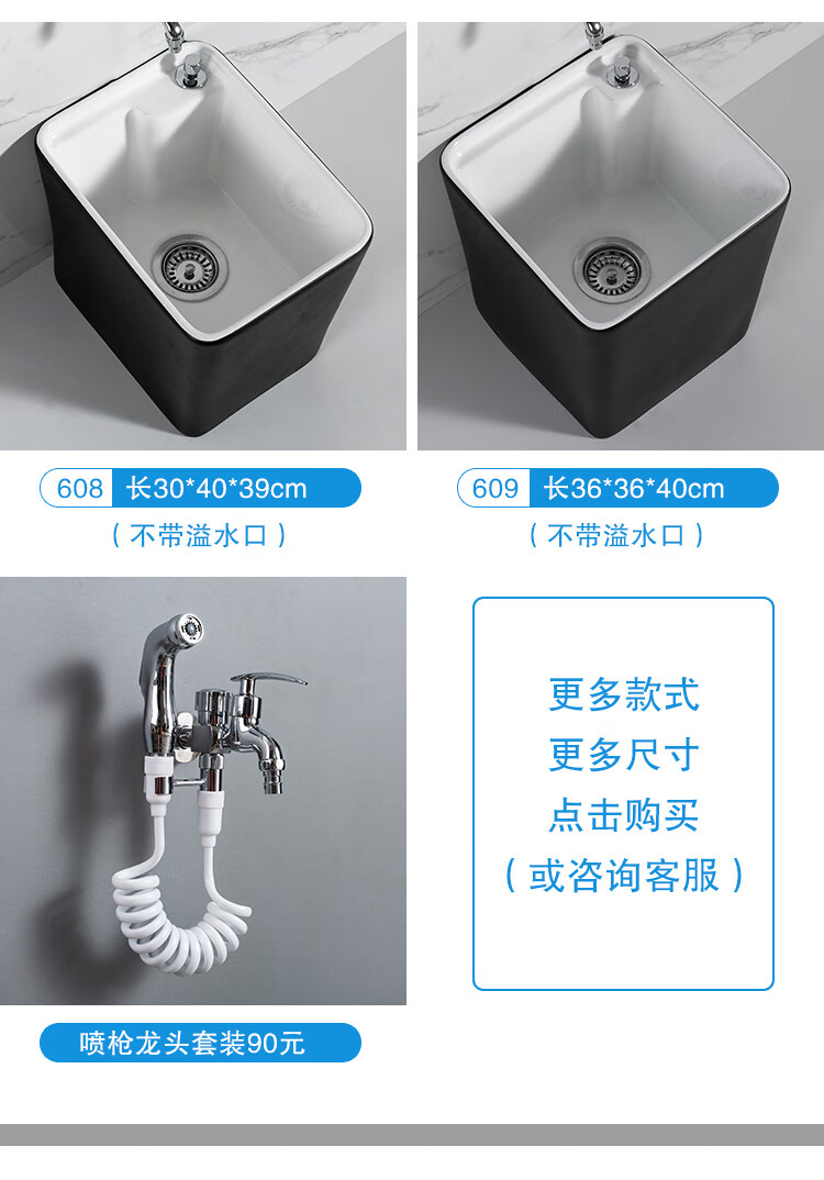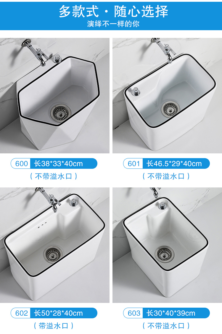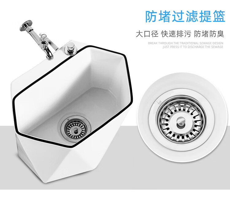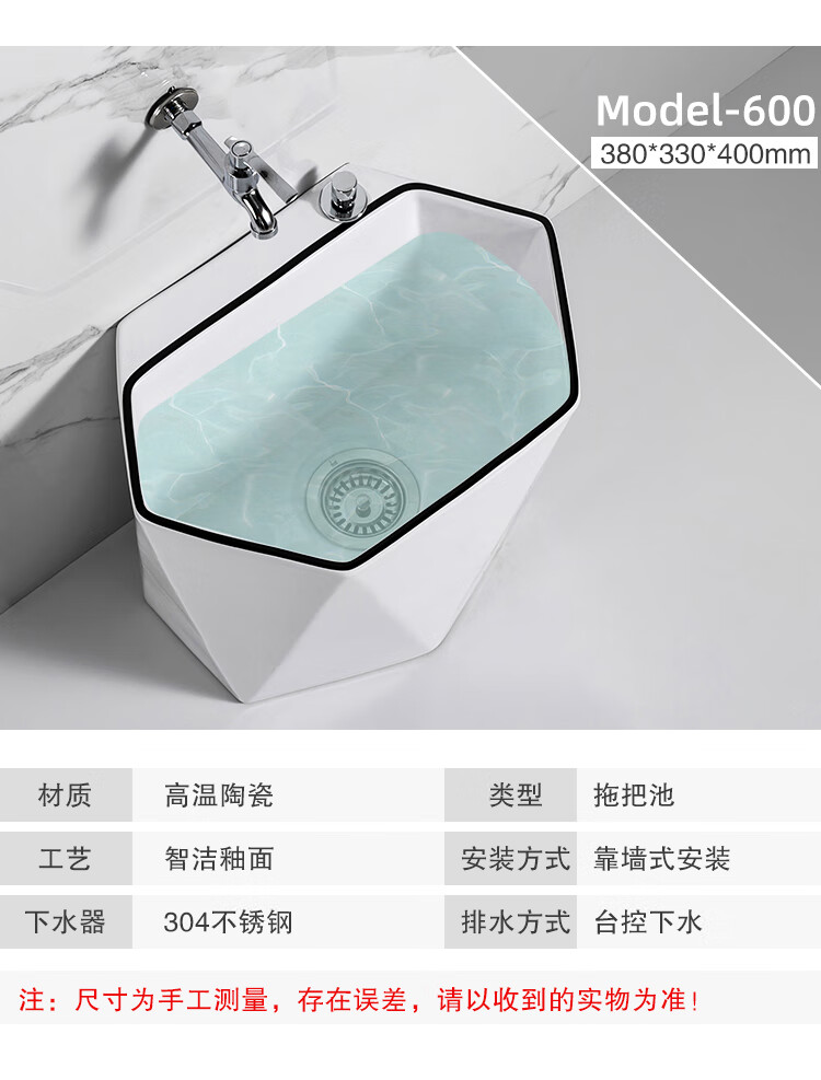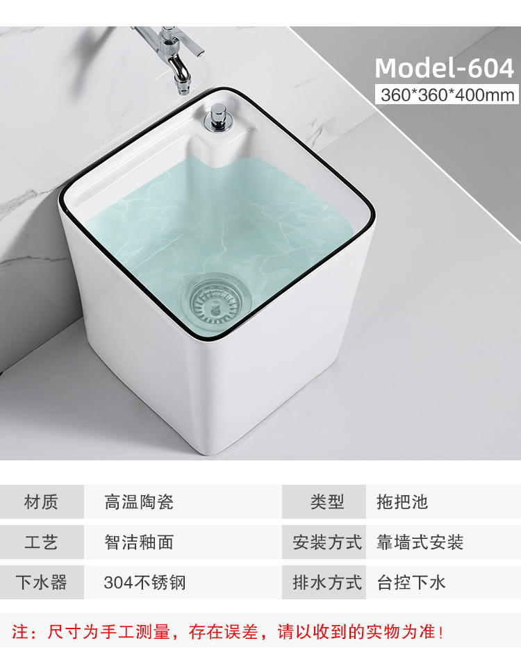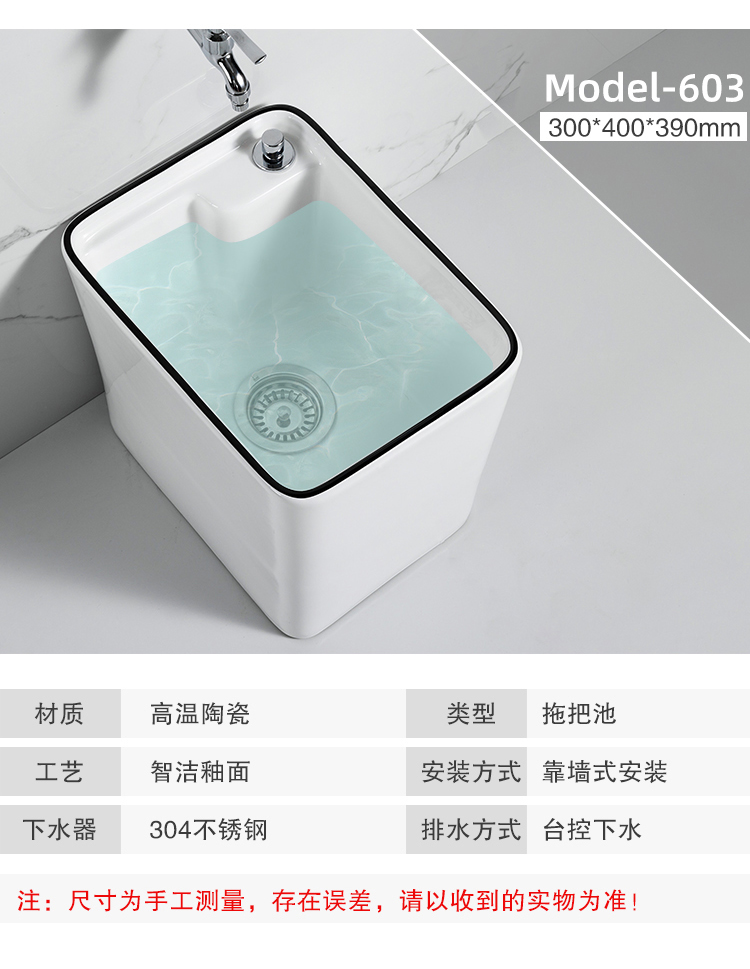 Guanmu Ceramic Mop Pool Balcony Large Mop Pool Household Mop Pool Floor-standing Washing Mop Black White Bathroom Small Washing Mop Tank 601+ Taiwan Controlled Water Set