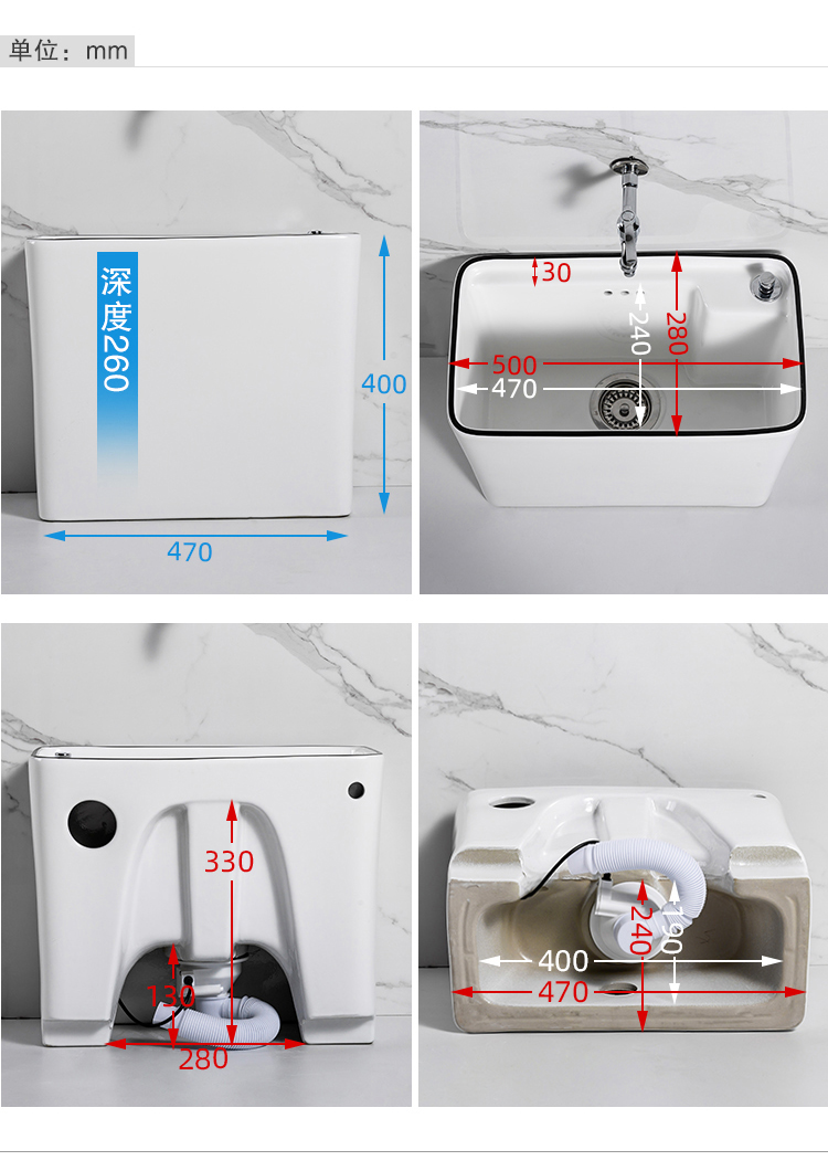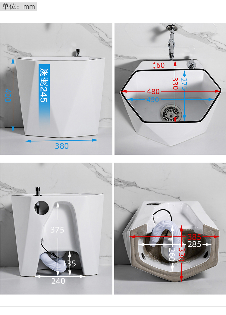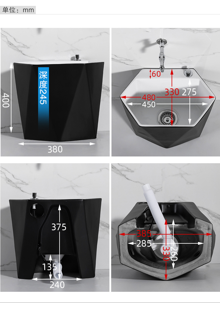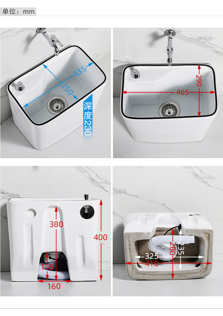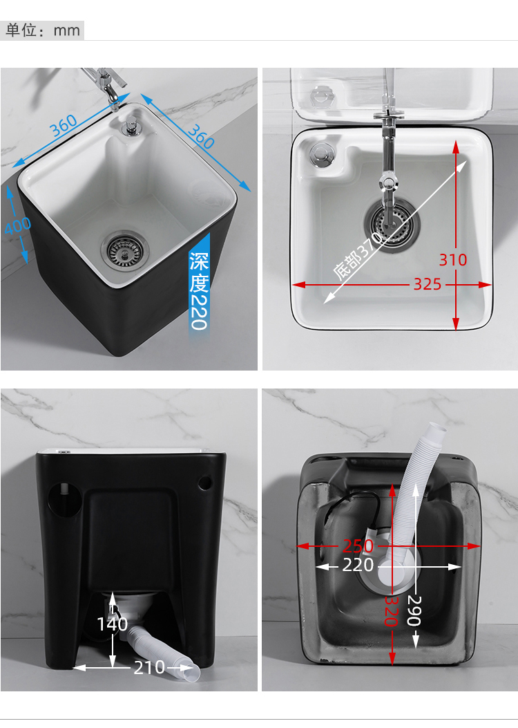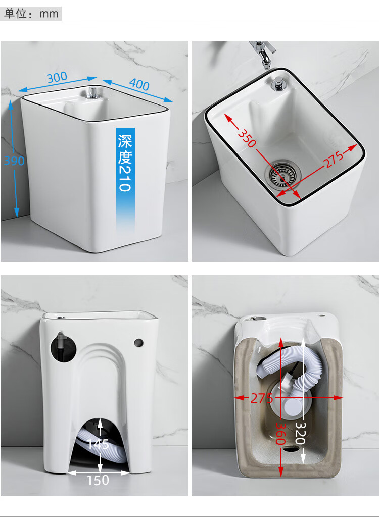 Guanmu Ceramic Mop Pool Balcony Large Mop Pool Household Mop Pool Floor-standing Washing Mop Black White Bathroom Small Washing Mop Tank 601+ Taiwan Controlled Water Set