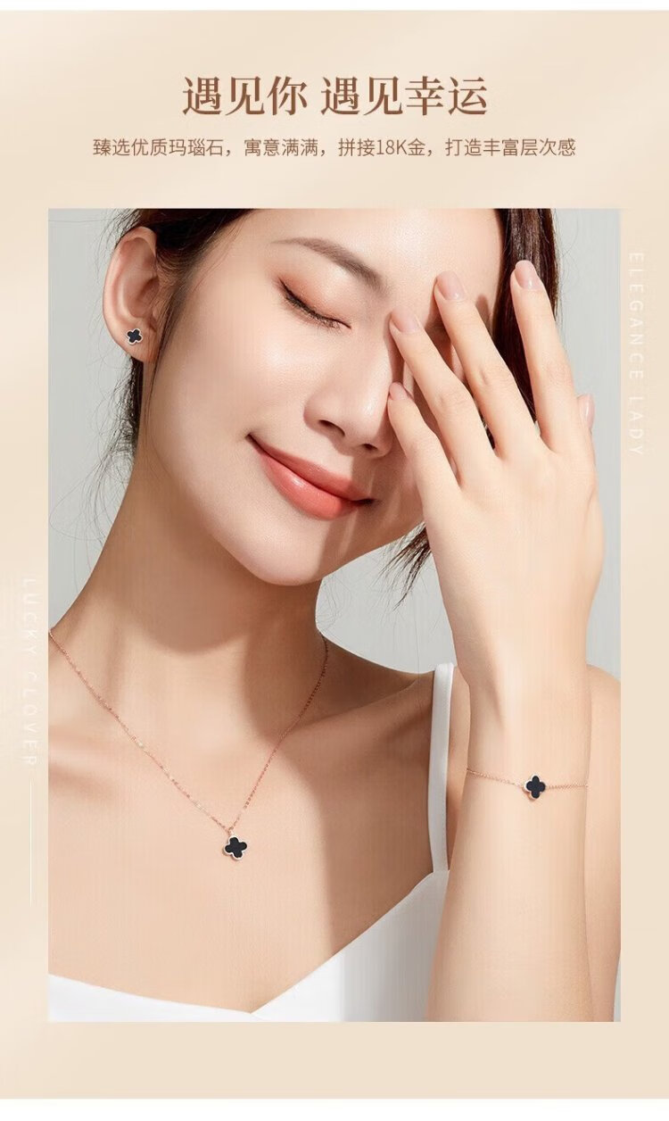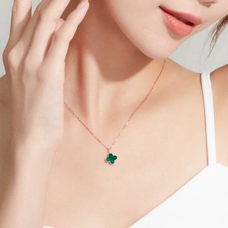 Xinyanxinyu 18k gold four-leaf clover necklace for women rose gold pendant agate clavicle chain Chinese Valentine's Day birthday gift