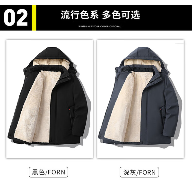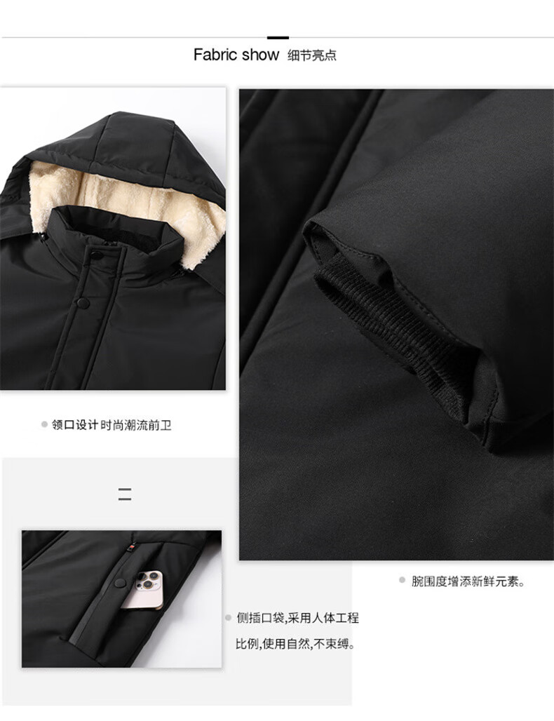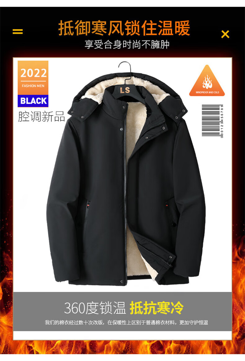 ROMON cotton jacket men's winter all-match casual warm plus velvet thickened cotton jacket ZH2237 black 2XL