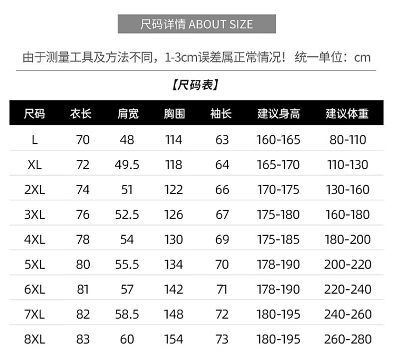 China (cm) 165 / 88-90 170 / 96-98 175 / 108-110 180 / 118-122 185 / 126-130