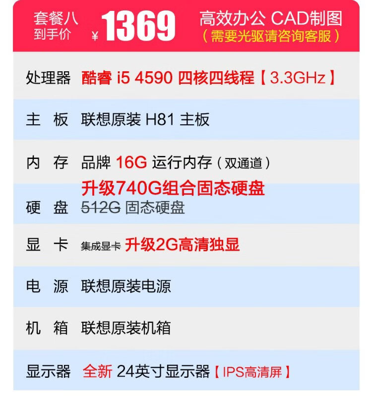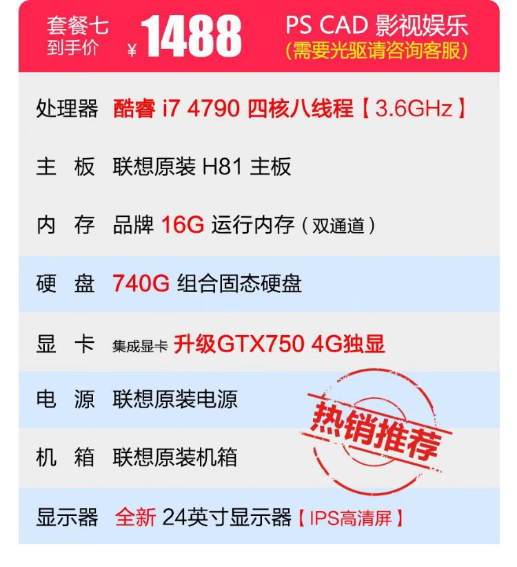 Lenovo Desktop Intel Core i7/Independent Graphics Business Office Design Editing Game Second-hand Computer Complete Configuration Eight Core i5 512G 2G Independent Graphics 24-inch