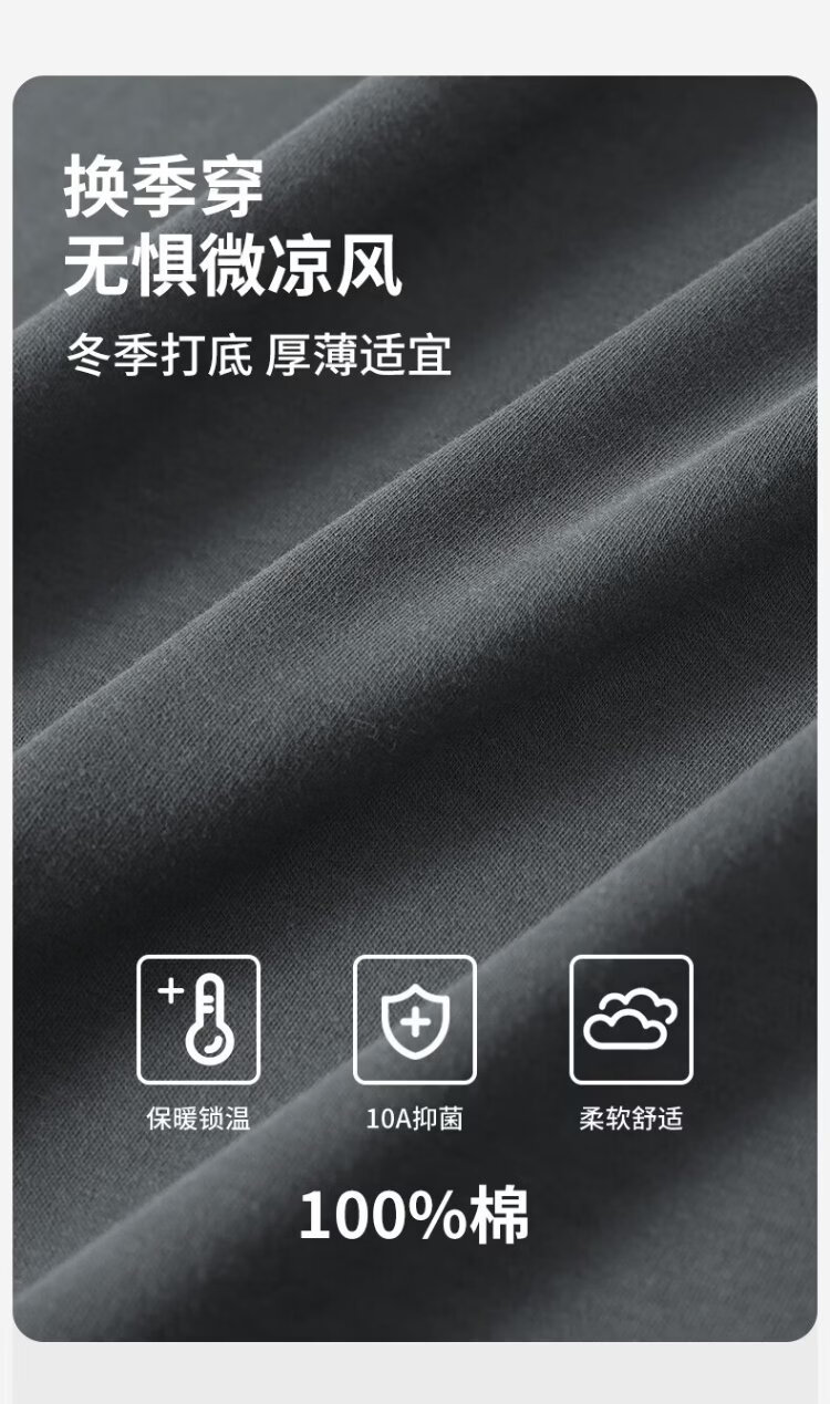 Duoduo Cotton Yushi Same Style 100% Cotton Thermal Underwear Set Men's Category A Cotton Winter and Autumn Clothes and Autumn Pants Cloud Light Gray XL