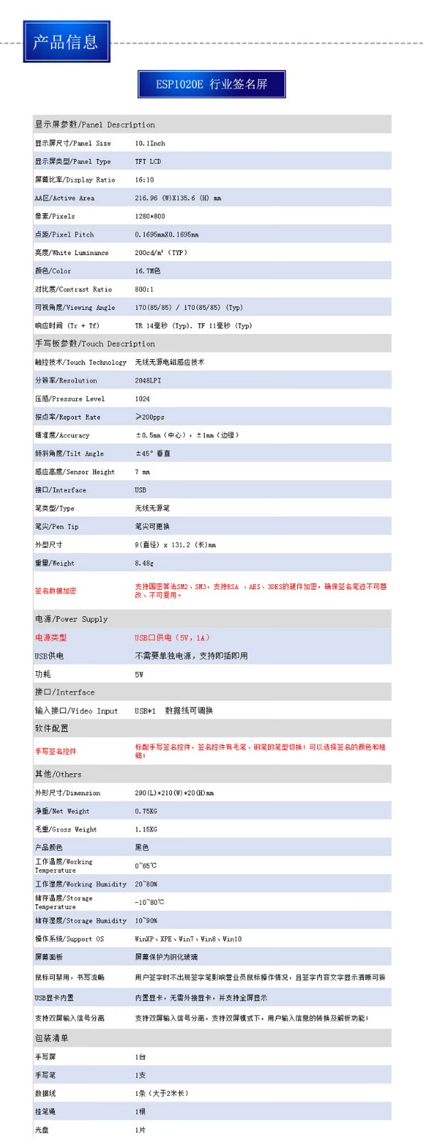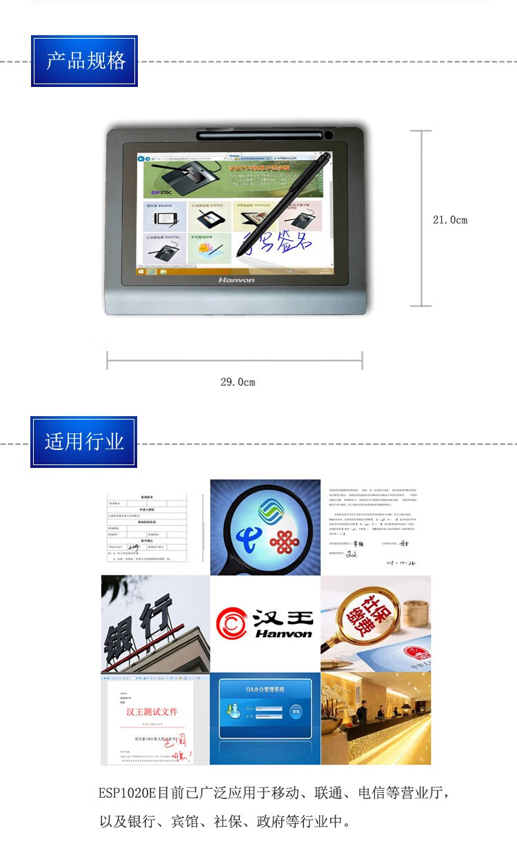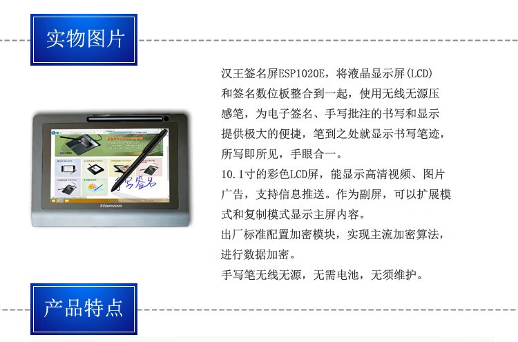 Hanvon signature screen ESP1020A/Esp1020e original handwriting preservation electronic signature screen LCD screen handwriting pad digital screen ESP1020E (for China Postal Vouchers)