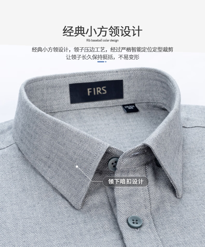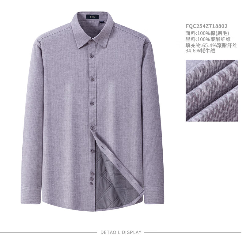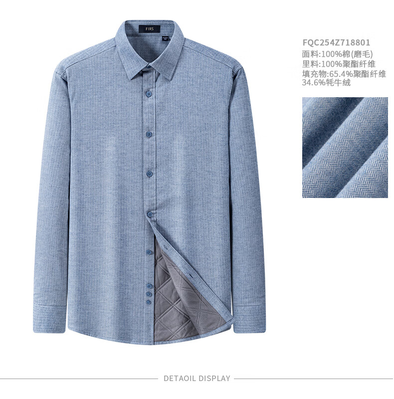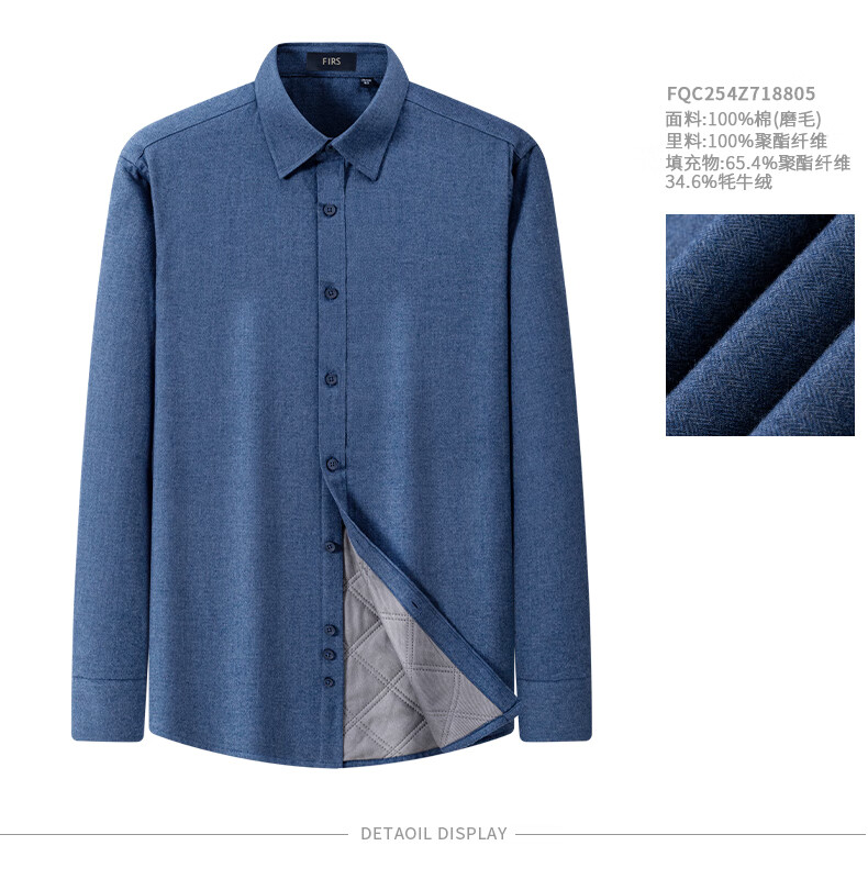 Shanshan (FIRS) yak velvet liner warm shirt men's winter casual business brushed thick shirt navy dark pattern 42