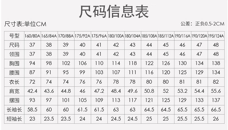 China (cm) 160-165/84-86 165-170 / 88-90 167-172 / 92-96 168-173 / 98-102 170-176 / 106-110