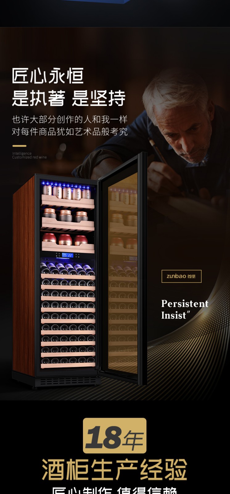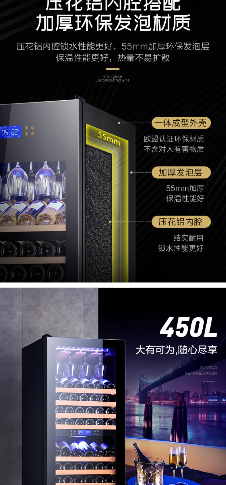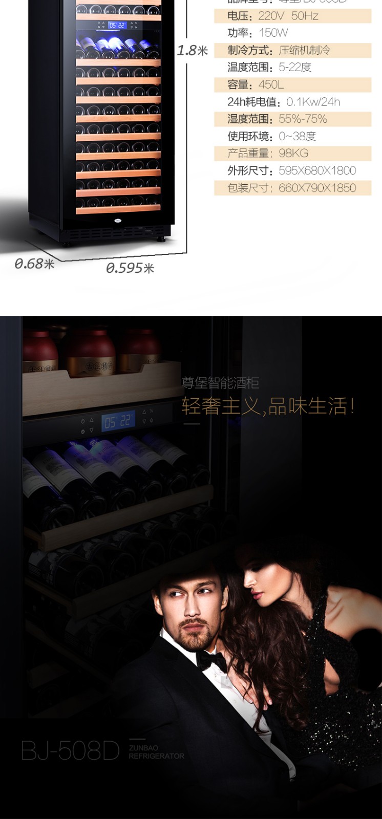 Zunbao BJ-508D constant temperature wine cabinet red wine cabinet home living room office tea preservation refrigerator commercial wine cabinet fully equipped with red wood grain