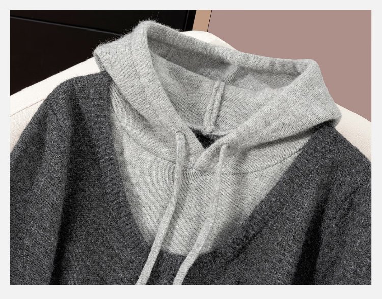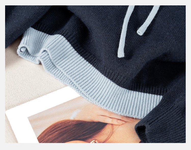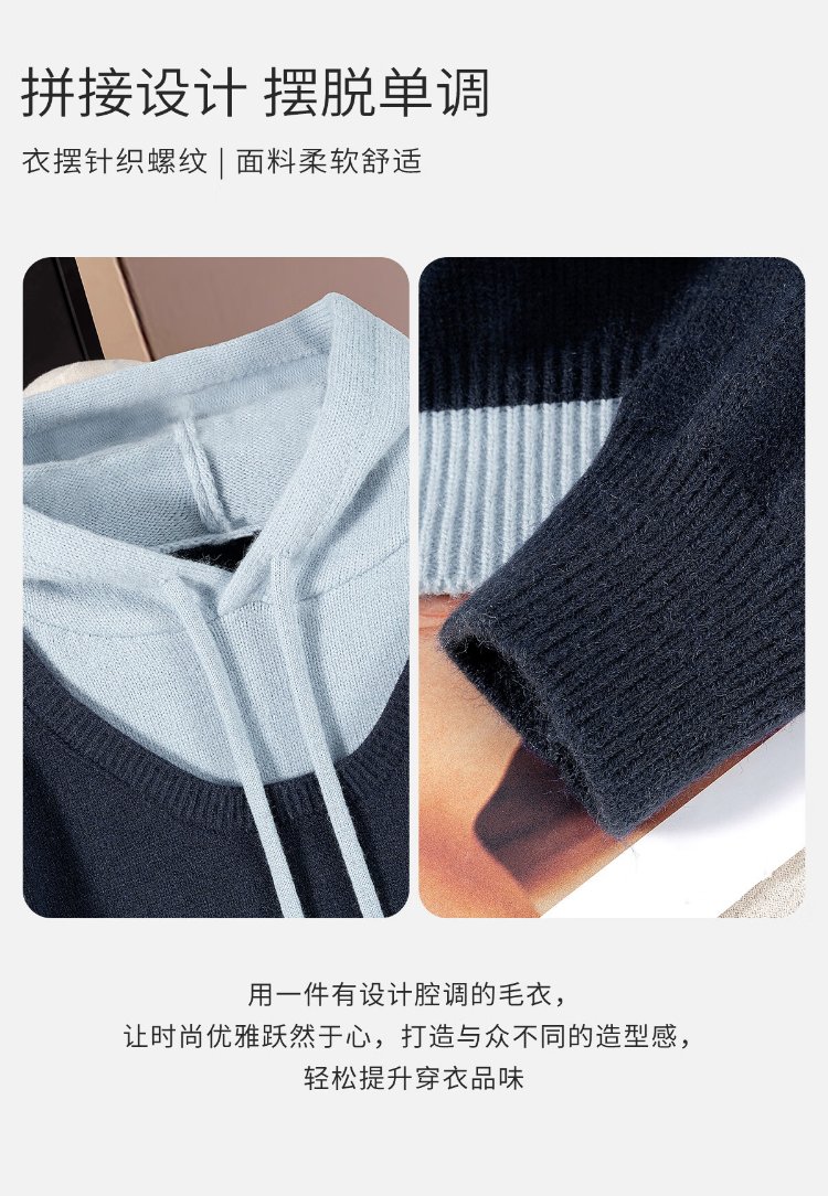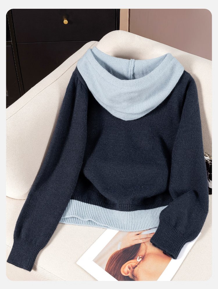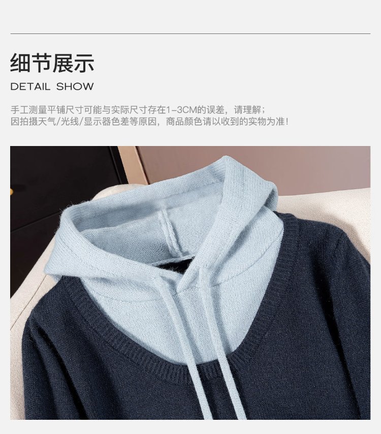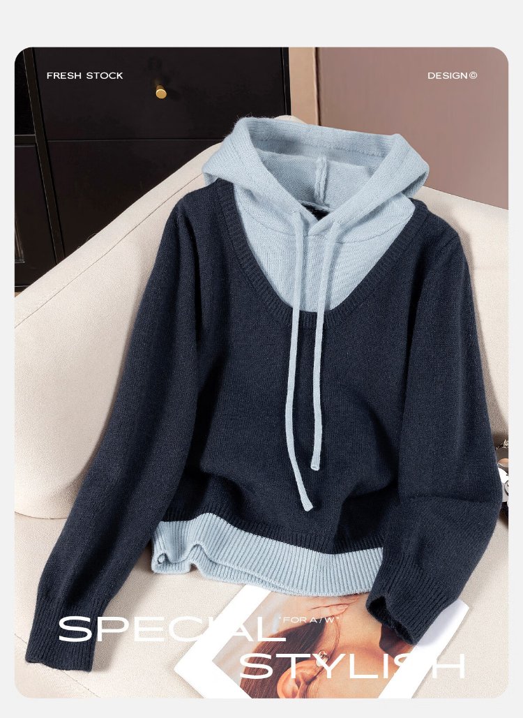 Sibaishe contrasting color hooded fake two-piece sweater for women 2026 spring new fashion simple long-sleeved pullover top