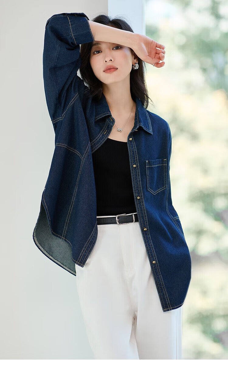 Handu Yishe Retro Denim Shirt Jacket Women's 2025 Spring Style High-Quality Lazy Style Loose Slim Casual Top