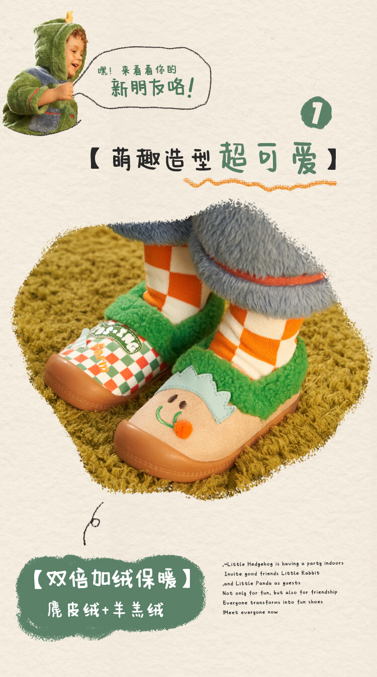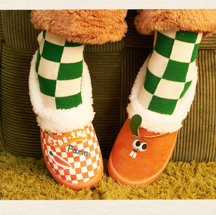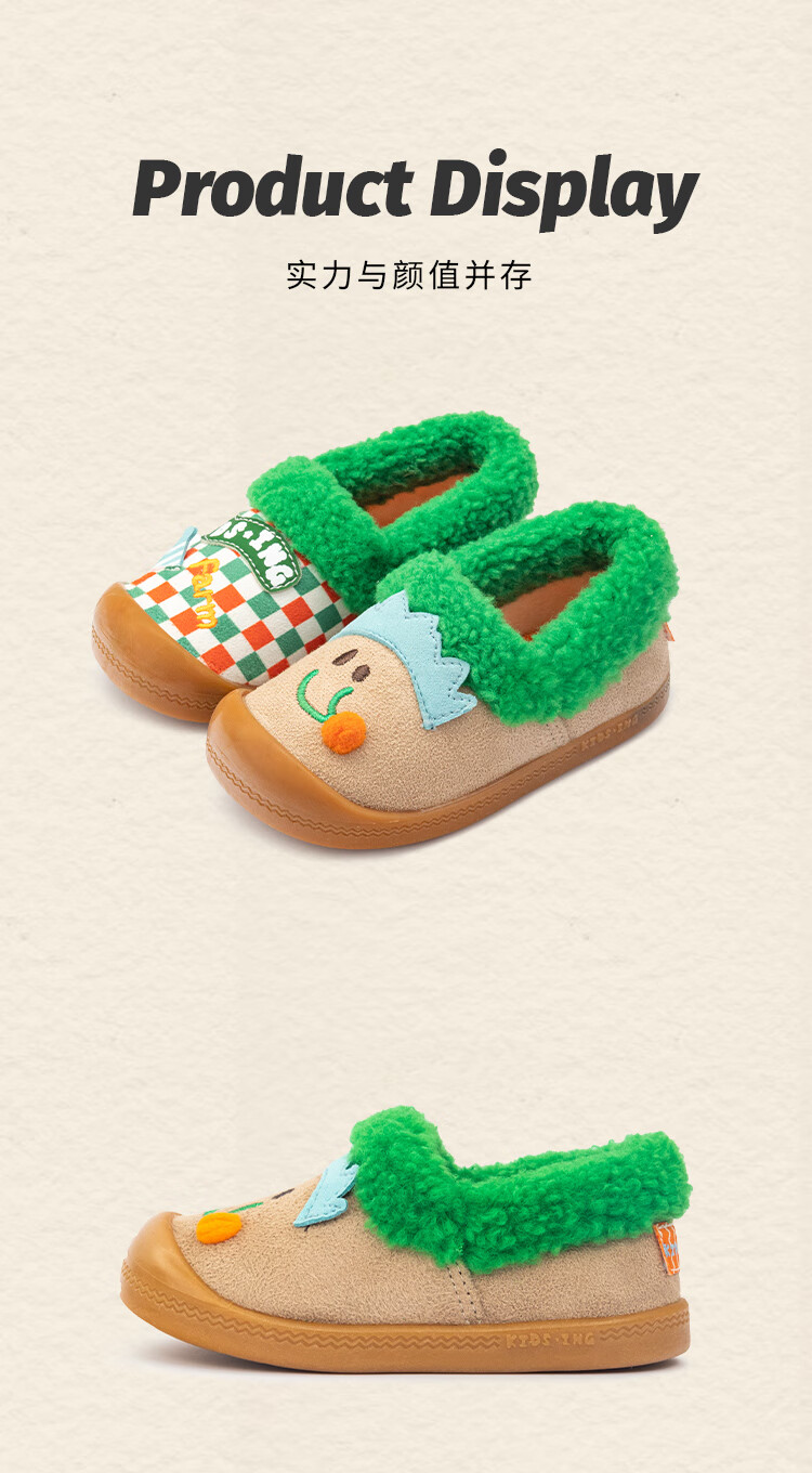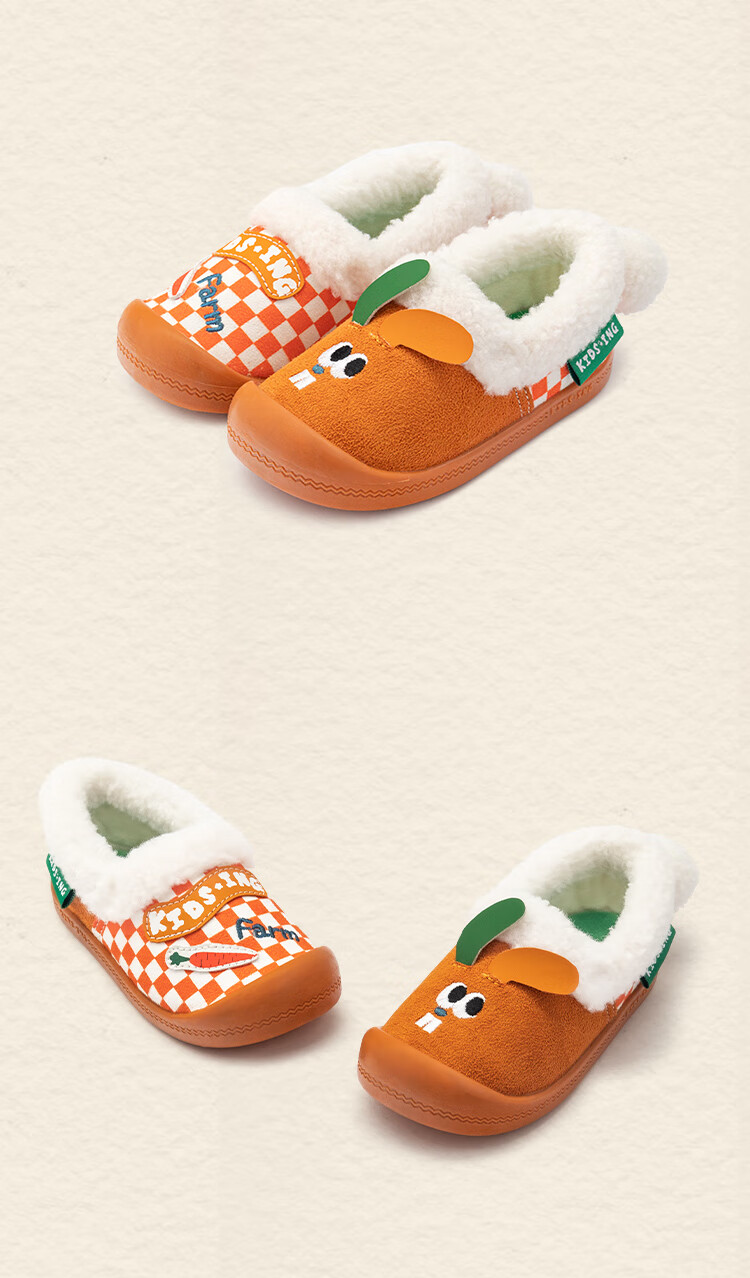 Kids.ing Kedi Star baby cotton slippers autumn and winter for boys and girls, middle and large children indoor home warm anti-slip cotton shoes Turmeric 27