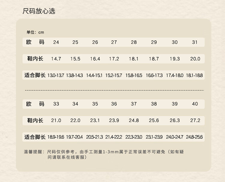 China (cm) 36 - 37 38 - 39 40 - 42 43 - 44 45 - 47