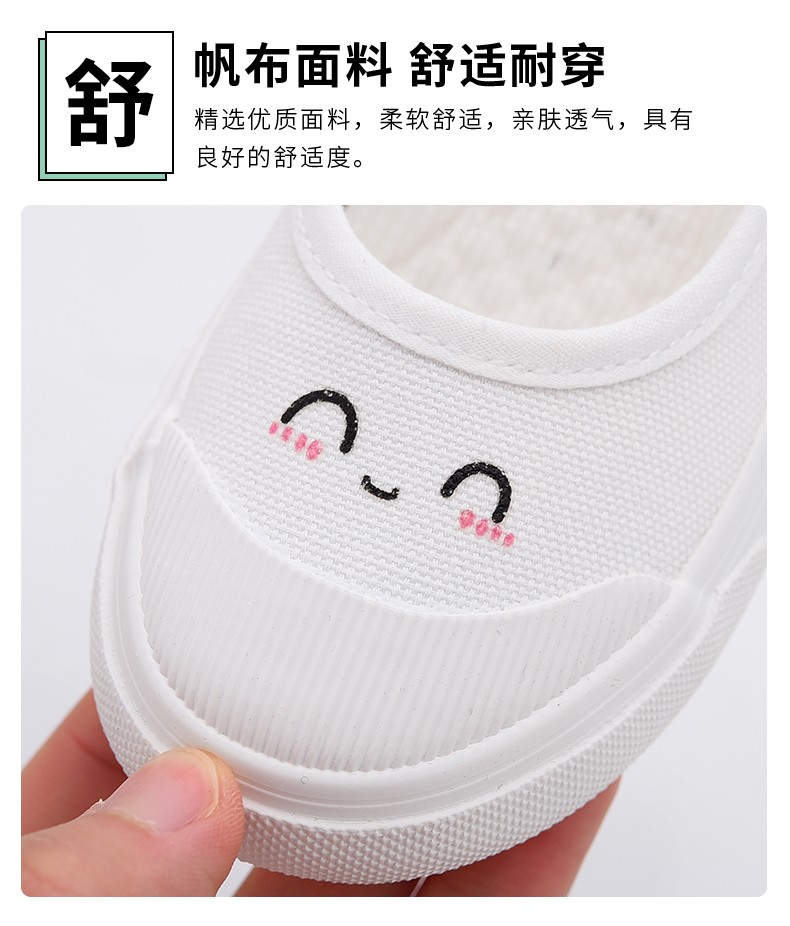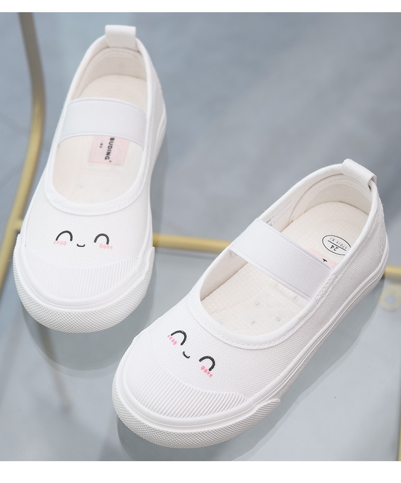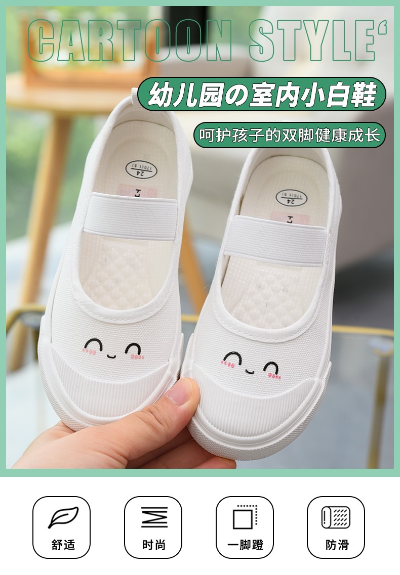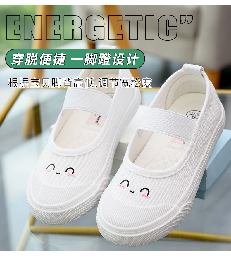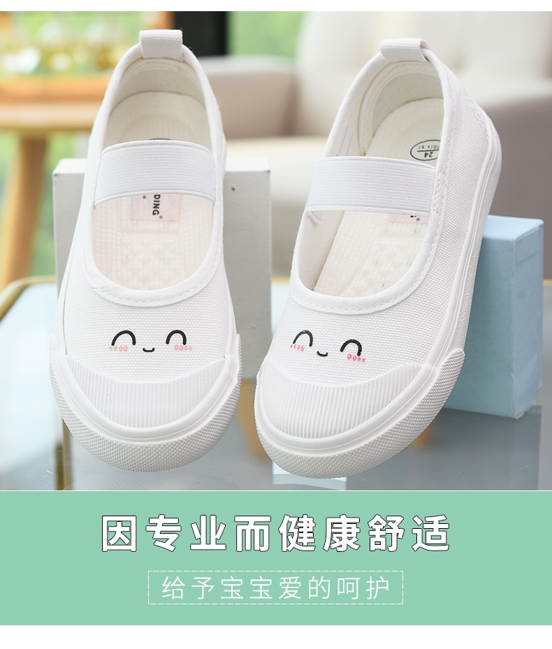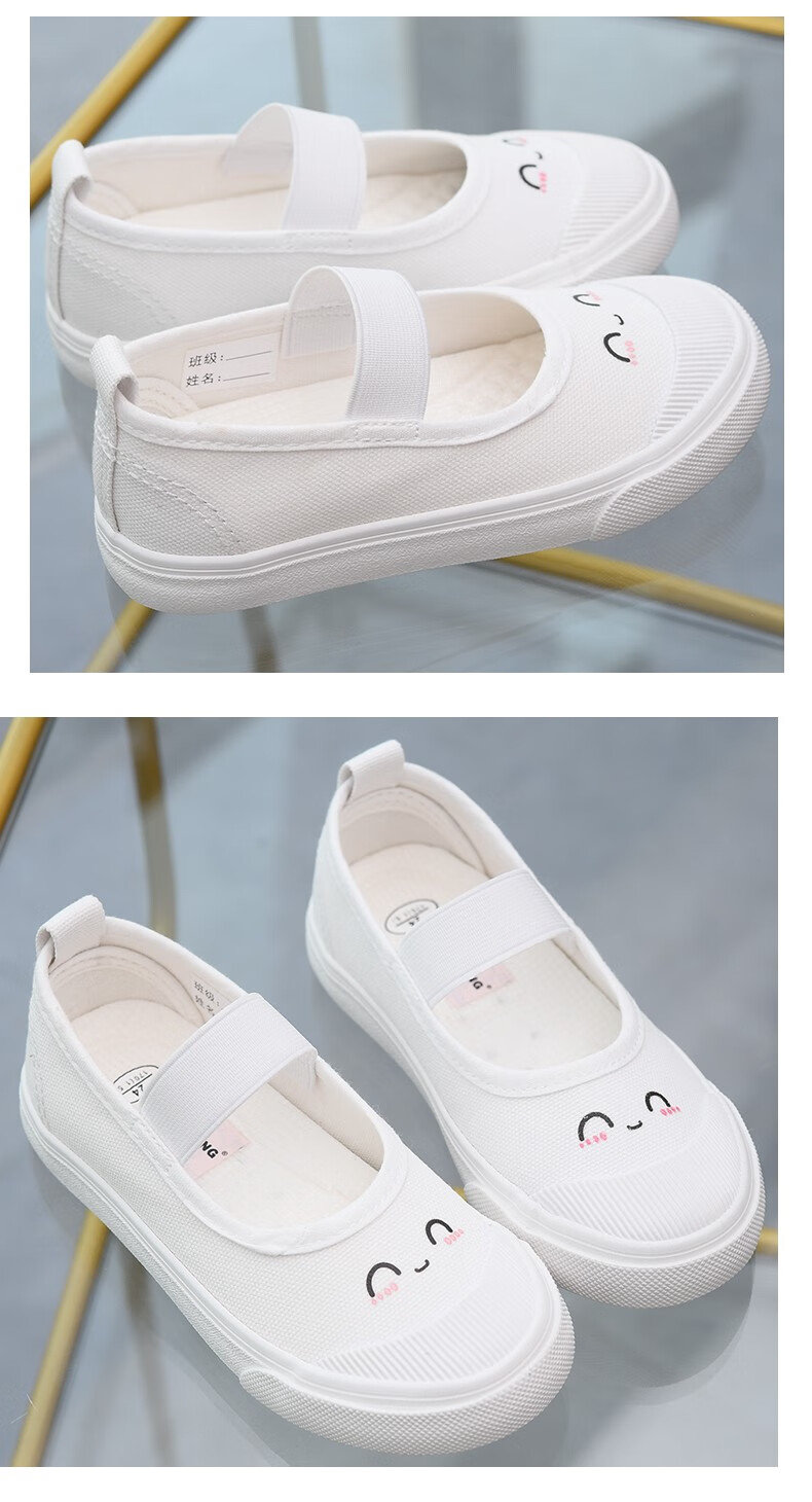 BUDING children's small white shoes, kindergarten shoes, girls' kindergarten indoor shoes, canvas shoes, baby white shoes, non-slip breathable children's shoes, white smile 31, inner length 19.5/suitable for feet 19cm long