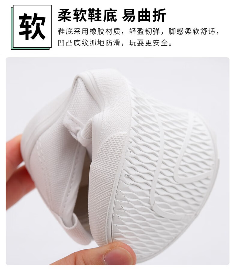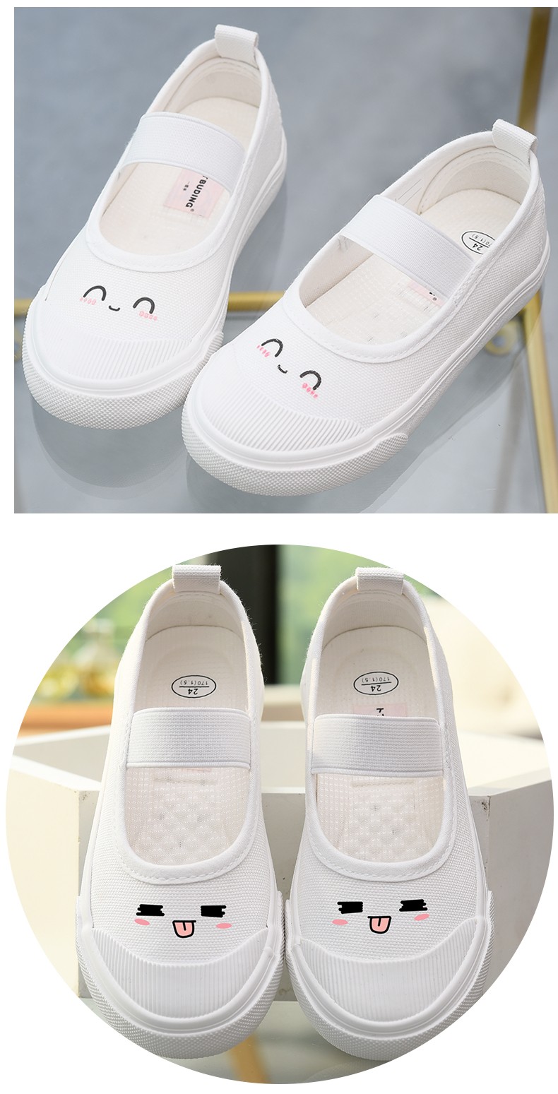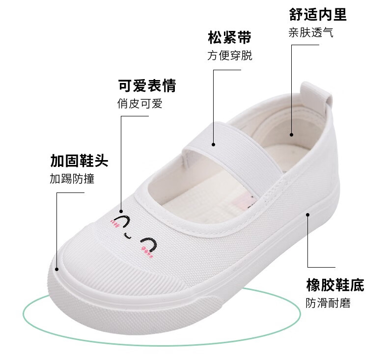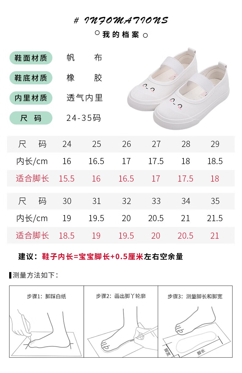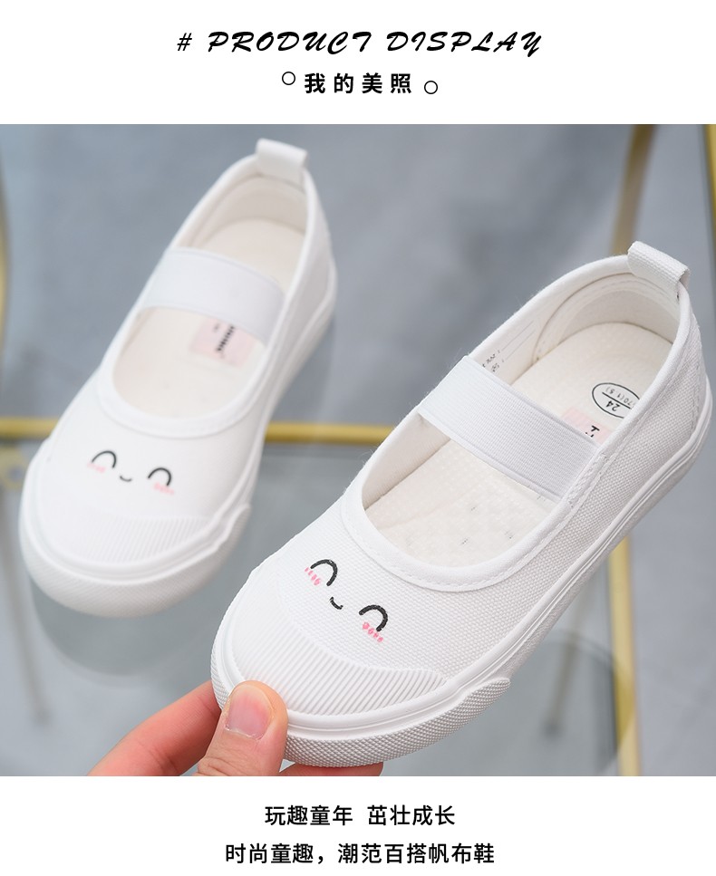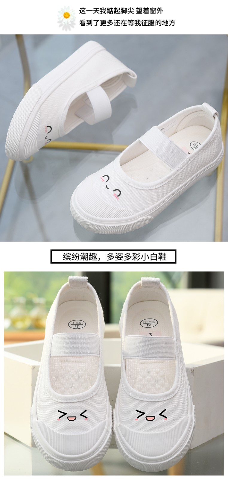 BUDING children's small white shoes, kindergarten shoes, girls' kindergarten indoor shoes, canvas shoes, baby white shoes, non-slip breathable children's shoes, white smile 31, inner length 19.5/suitable for feet 19cm long