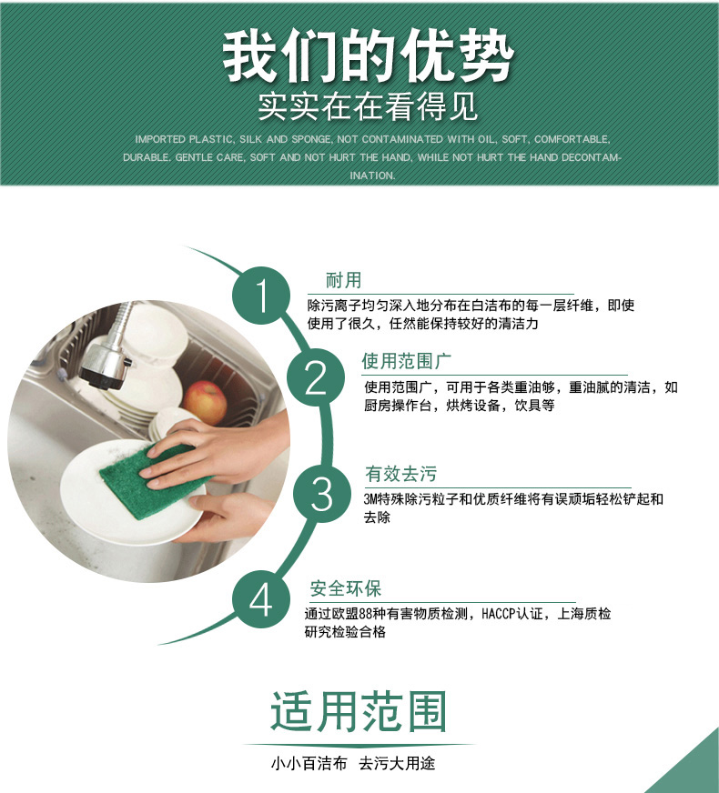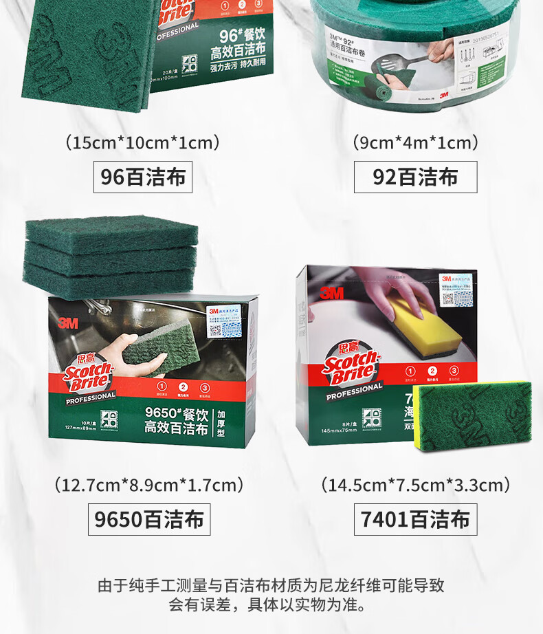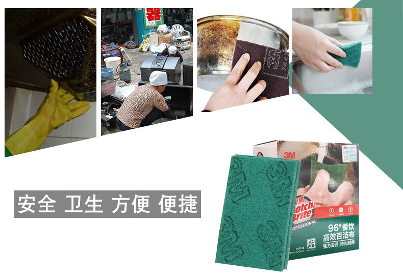 3M Scotch scouring pad wiping cloth dishcloth rag hotel catering 96# home kitchen dishwashing sponge dish towel 96# 20 pieces (1 box)